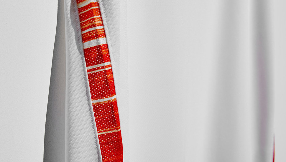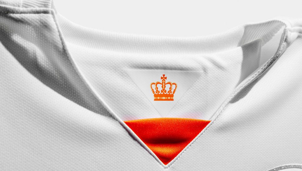 The graphic on the shorts is used to create a strong sense of motion and a blur of color and light when the Dutch players are in action (top image may be slightly exaggerated). The renowned Dutch graphic designer and typographer Wim Crouwel has created a special font for the names and numbers on the kit. The bold and modern font also maintains a retro appearance, reminiscent of the style seen throughout football during the 1970s.