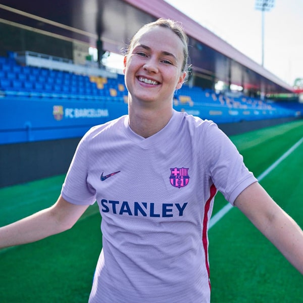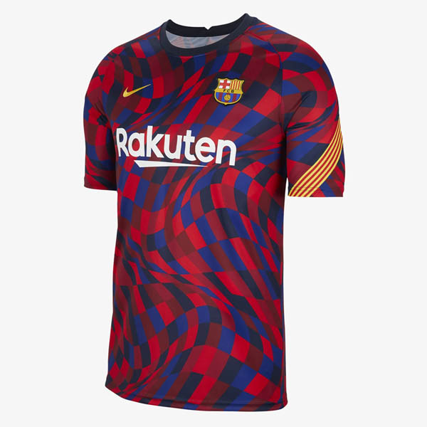 Nike swap the club’s famed blue and red stripes for a hooped look, inspired by the Blaugrana flags seen on match days at Camp Nou.