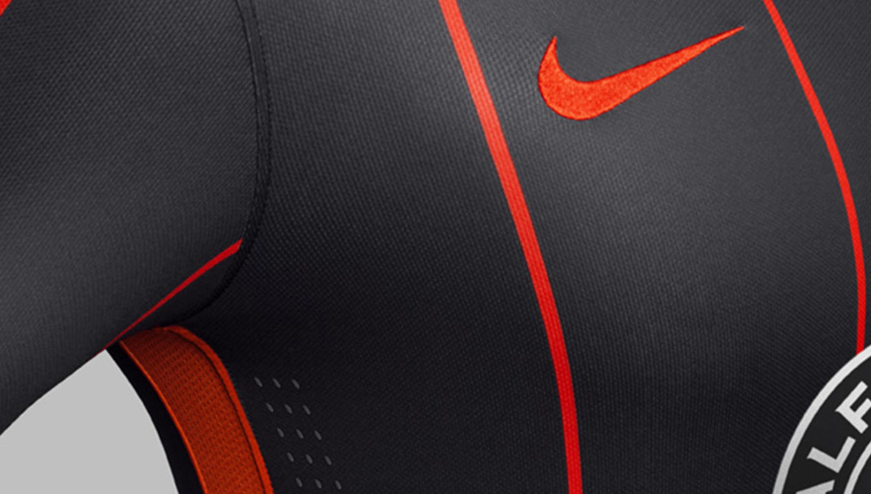 A modern v-neck collar gives it an ever strong contemporary feel which is partnered with no nonsense all-black shorts. A tonal stripe of chevrons sits on the back of the socks wraps this kit up, presenting a proud symbol for the club whilst holding all the latest Nike performance innovation.