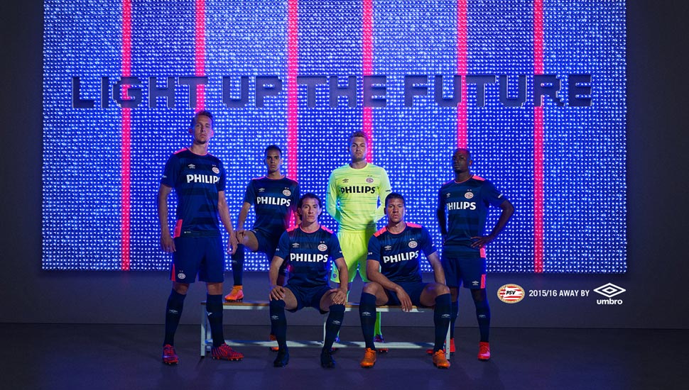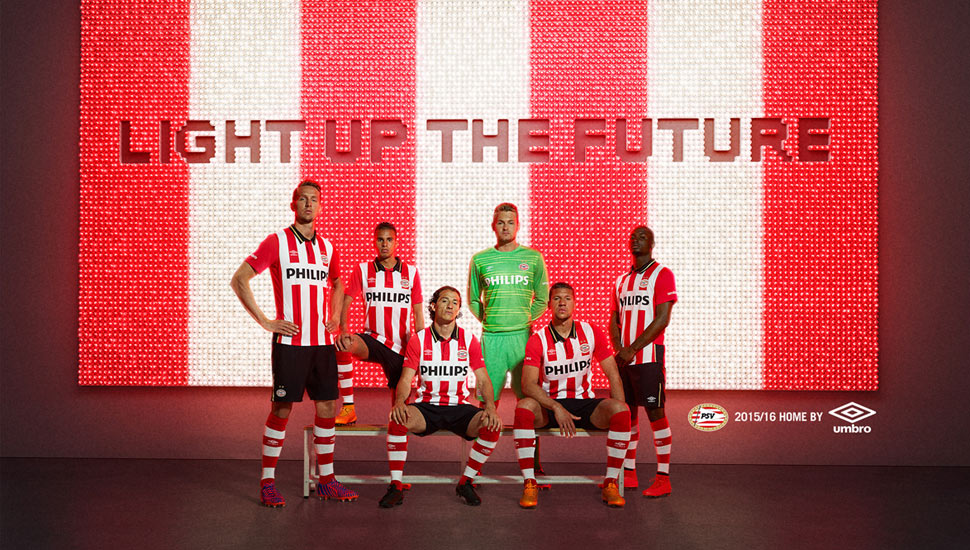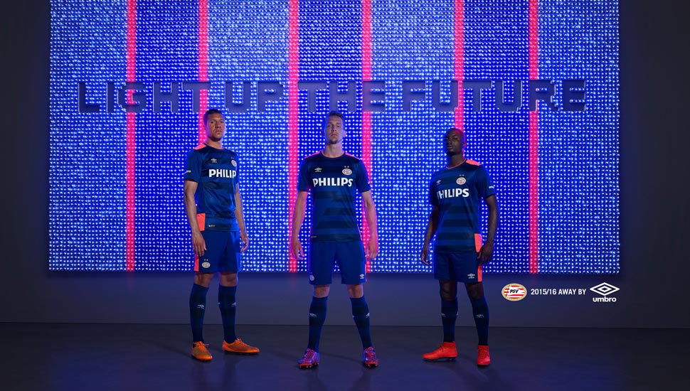 Fully equipped to 'Light up the Future' umbro have revealed contemporary classics in the shape of the 15/16 home and away PSV Eindhoven kits.
