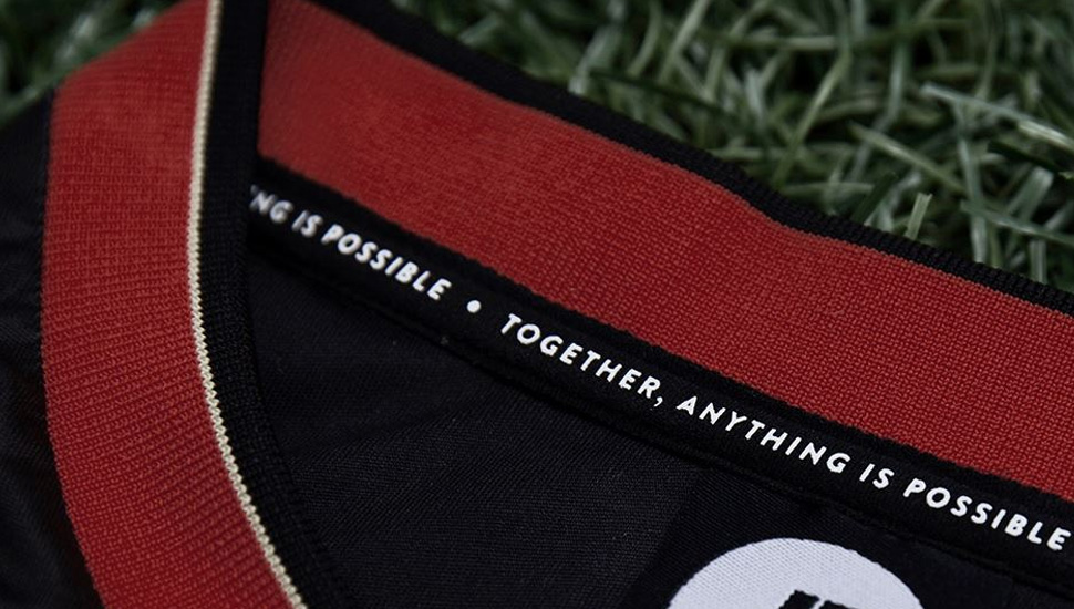 The strong, traditional black and red stripes give the kit a distinctive look with trims of gold offering a touch of class throughout. A round neck collar with an inner taping that contains the phrase 'Together, anything is possible' a mantra the club holds close with fans and team combined in their efforts and belief while equally from a creative stand point, it's bang on the money with collaboration no doubt a key factor in fueling innovation.