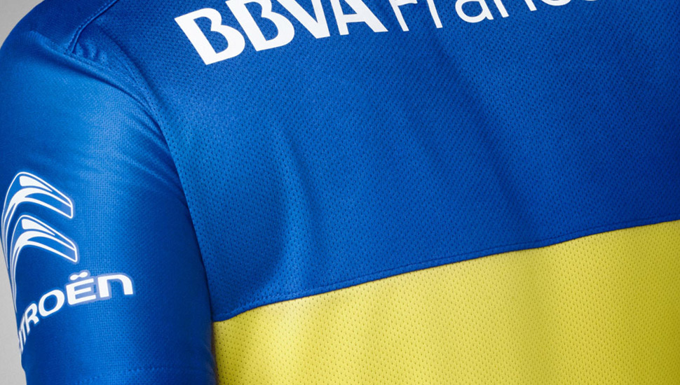 Inspired by those that make it so vividly rich, the club pays tribute to the fans of the club and their stadium that they paint with such powerful emotion. The new home kit is a strong blue with a no nonsense gold stripe across the center which matches the colours that dress La Bombonera. A home for the club for the past 75 years, it's an almighty place of worship that has decorated Boca's unrivaled history.