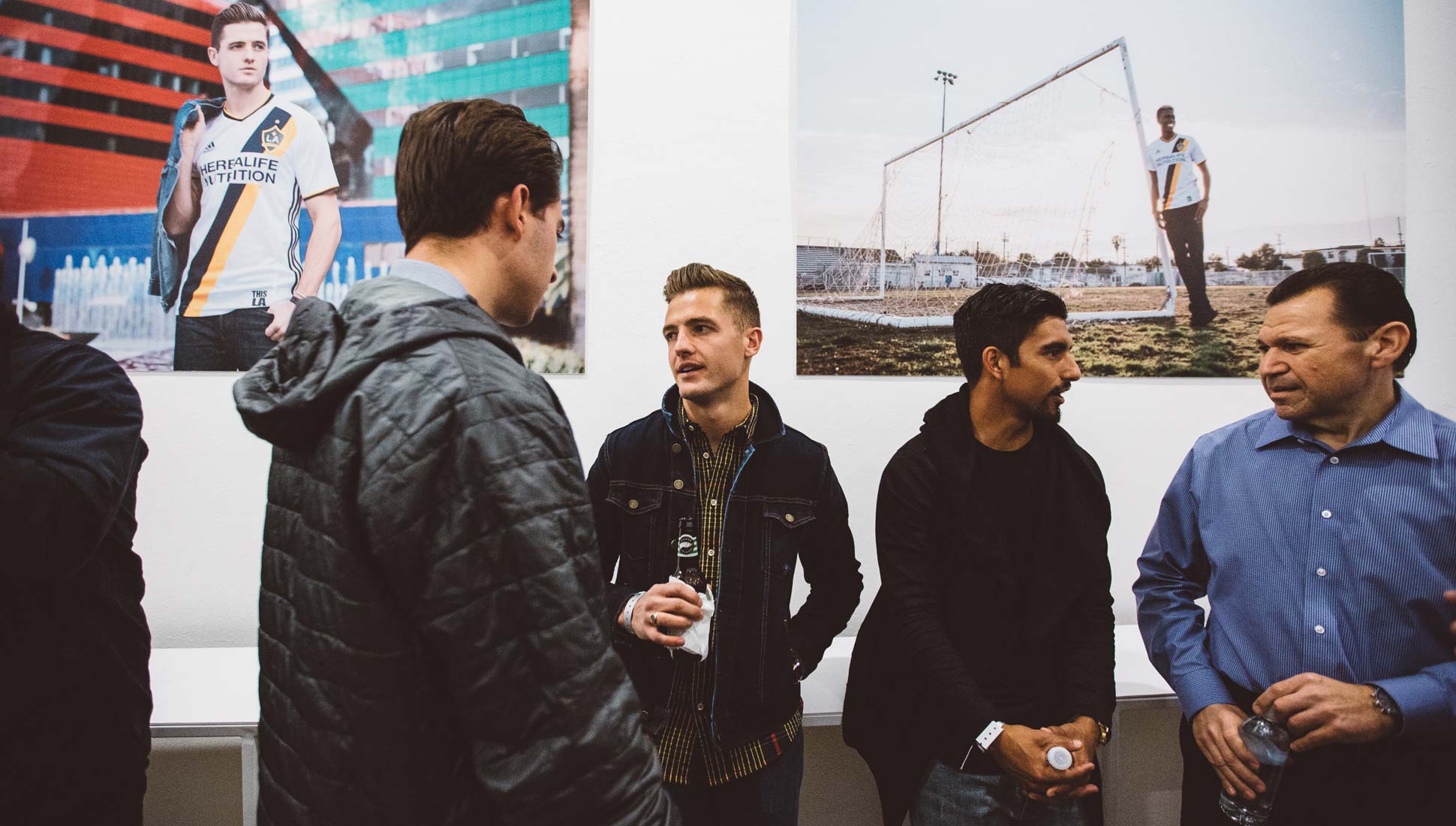 The sneaker store, which had been converted into a gallery space celebrating the Galaxy's new 2016 kit, featured 10 large prints showcasing Galaxy players posing in their home neighborhood, with photography captured by Robert Mora, Jon Lorentz and Hana Asano.