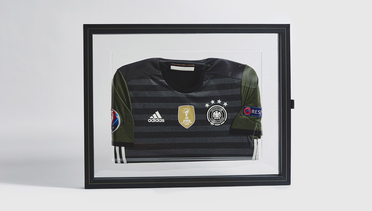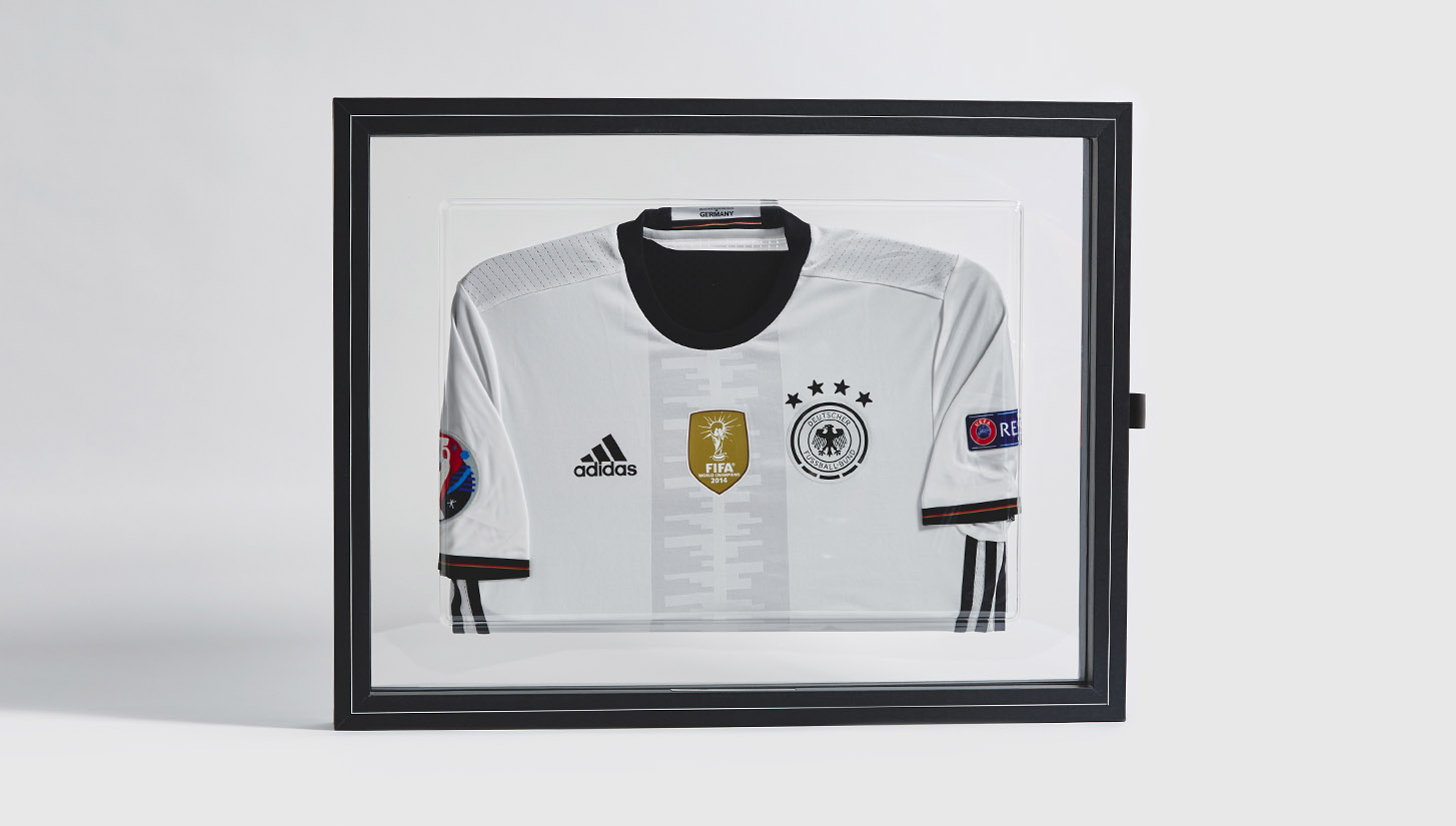 As a limited edition release, each framed shirt is individually numbered on a plaque and carries UEFA badges on both sleeves to sit alongside the exact authentic shirts worn by the German and Spanish players in France this summer. The Espana and Deutschland collections comes in a box that contains both the home and away jersey for that respective nation and slide out to separate into individual frames.