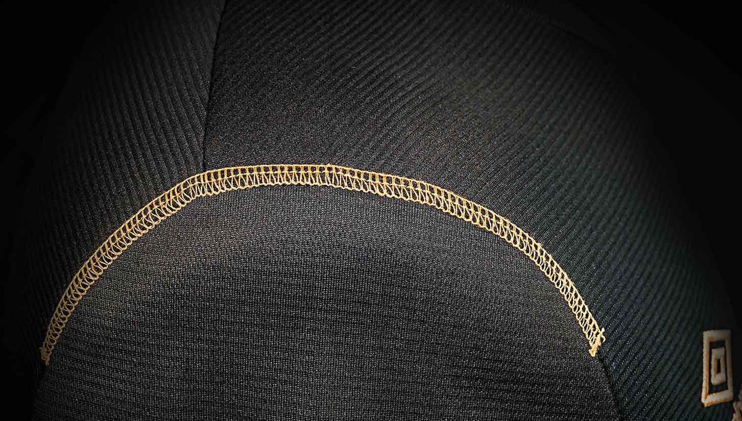 Subtle in detail, it's the simple shimmer and class above that set this treasure bearing treat aside. A v-necked collar, the all black base lends itself as the perfect canvas for the red and cream of the clubs crest to pop. Having had its first on pitch roll out over the weekend it's also a fixture that lends itself to sponsors nicely. South American shirts splashed with logos all over, it adds some character and locks a shirt into a point of time. Right now, the time is ticking with tailored tones and Umbro continue to deliver.