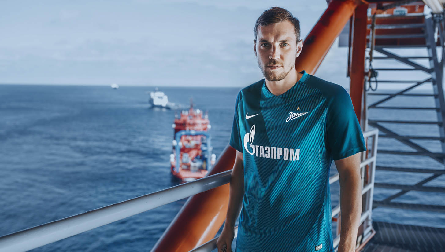 Ok sure, it's been a year in the making and your club has finally released their kits. How's it looking? Infinity wall backdrop? Tasteful wash of graphics as three heroes pose arms crossed? If you're an FC Zenit fan, it's 60km out to sea on an oil rig. We have ourselves a potential ice cold winner.