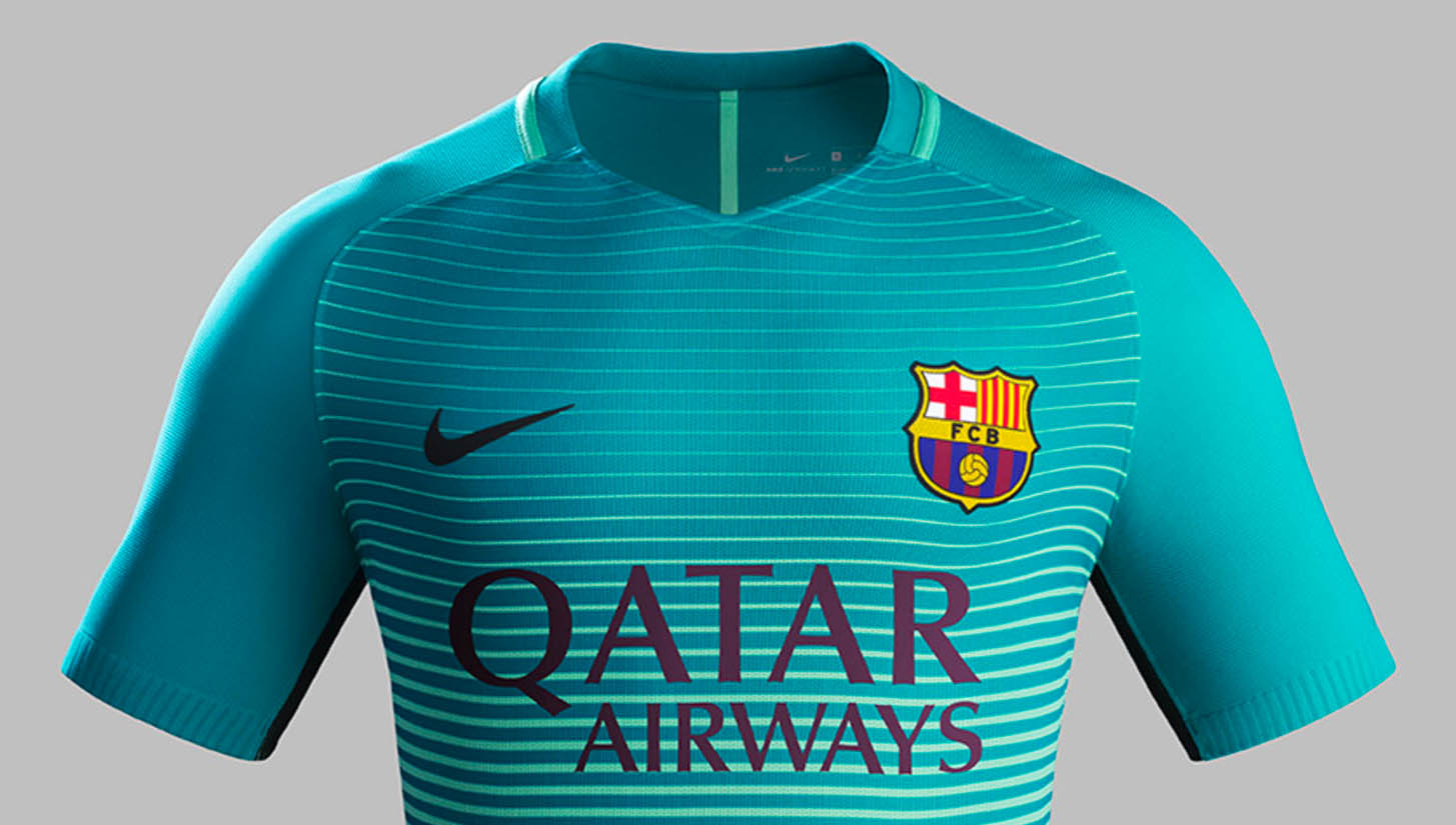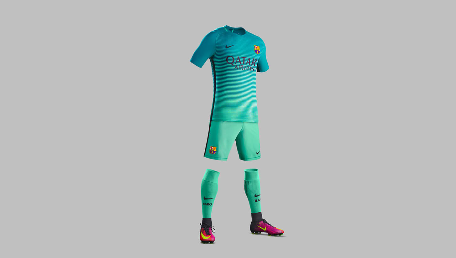 Much like the coach report of the tenacious front three that lead the line at Barcelona, the club's new third kit from Nike is a striking head turner.