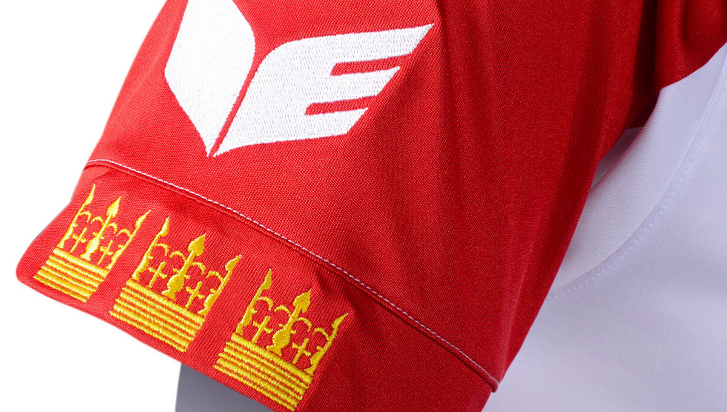 A spectacle number that has been created by kit manufacturer ERIMA, it's marked with all sorts of details that characterise the iconic elements of Cologne. The city's logo is integrated into various parts of the kit - not simply sublimated. Embroidered in to the left arm are tears while crown jewels are on the right, all paying tribute to the badge of the city.