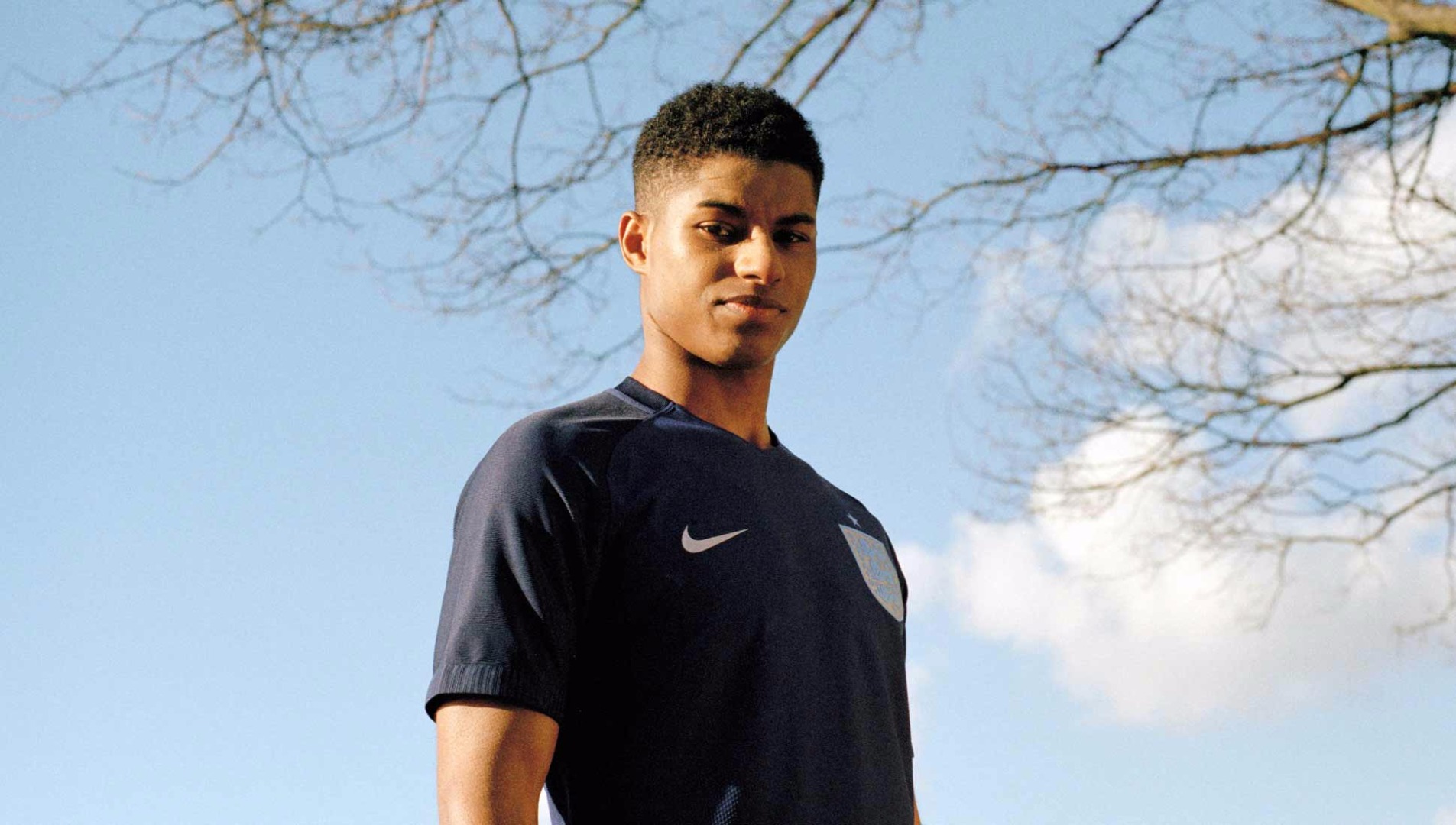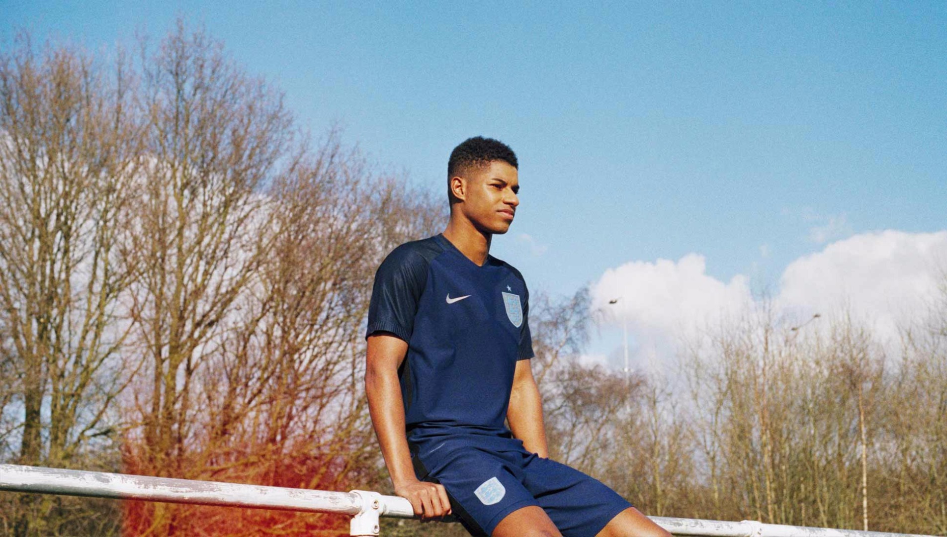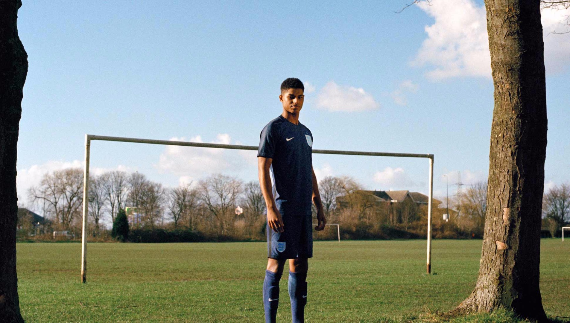 Nike lean on a new generation of attacking talent to emphasise the refreshed attitude of the Three Lions as Marcus Rashford provides an honest look at his relationship with the England team and the shirt. Wearing the new navy blue England Away Kit, the Manchester United forward talks about the first time he was given and England kit, to following in the footsteps of his hero Wayne Rooney, to the day he scored on his England debut.
