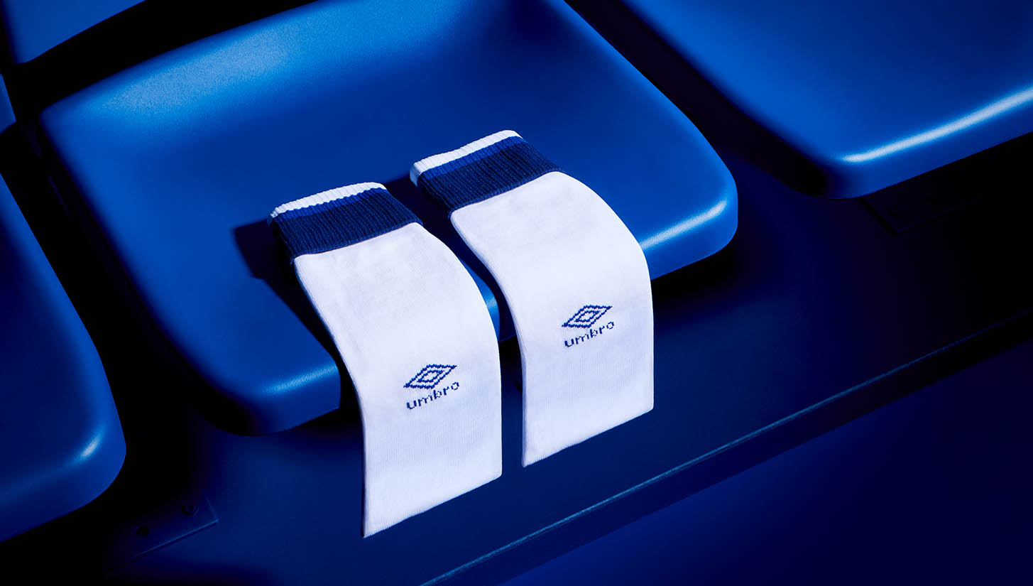 The kit itself shouts with less though definitely offers more as we see a return of that classic double diamond return to the shoulders of the shirt and the sides of the shorts. This in itself a design element which first featured on football shirts forty years ago. This ‘diamond taping’ has grown to become an iconic part of football culture, with fans of many clubs including Everton often calling for it to return to Umbro designs. It does so here in a stylish tonal adaptation that updates the classic diamond taping for the modern game.