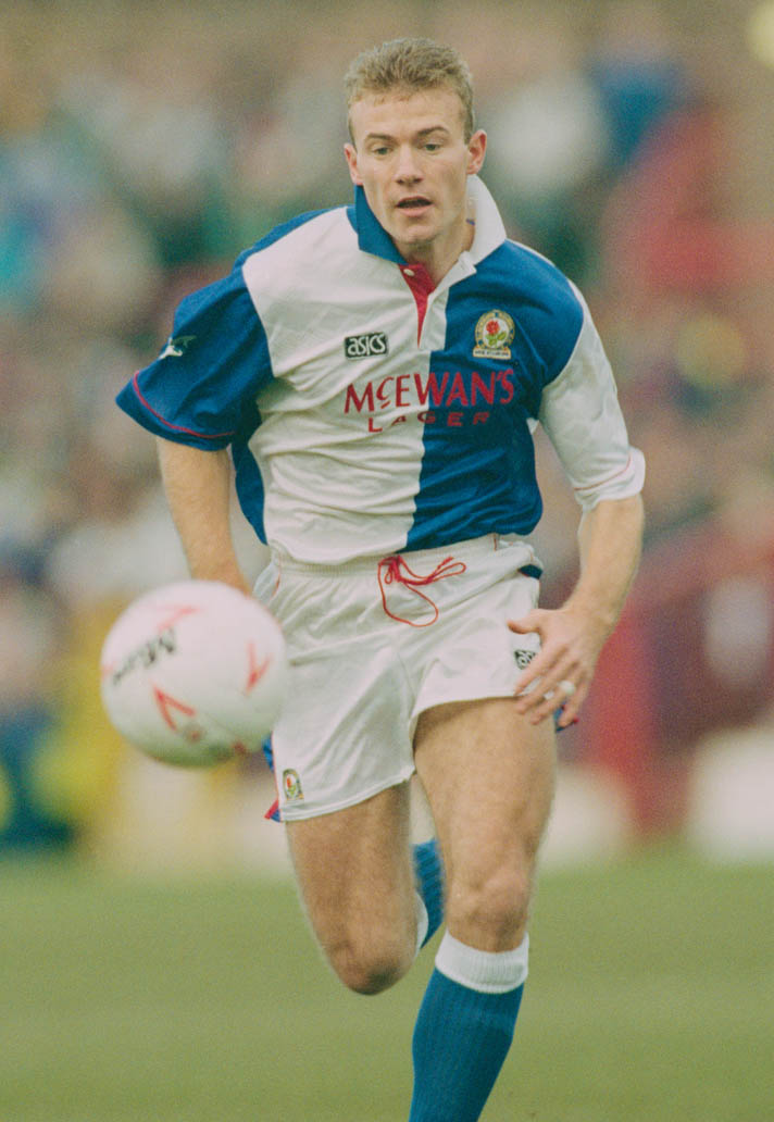 Blackburn Rovers | Just Alan Shearer wearing a XXL Asics shirt sponsored by McEwan's Lager. You'd have a can of that at half time back in these days, full of iron. That spilt coloured collar too, you love to see it.