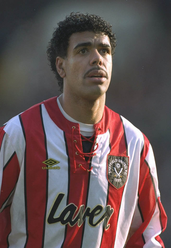 Sheffield United | Sponsored by a local timber merchant and equipped with more drawstring collared crispness. Sheffield United scored the first goal in Premier League era but were relegated just one season later. Anyway, here is Chris Kamara aged anywhere between 19 and 45.