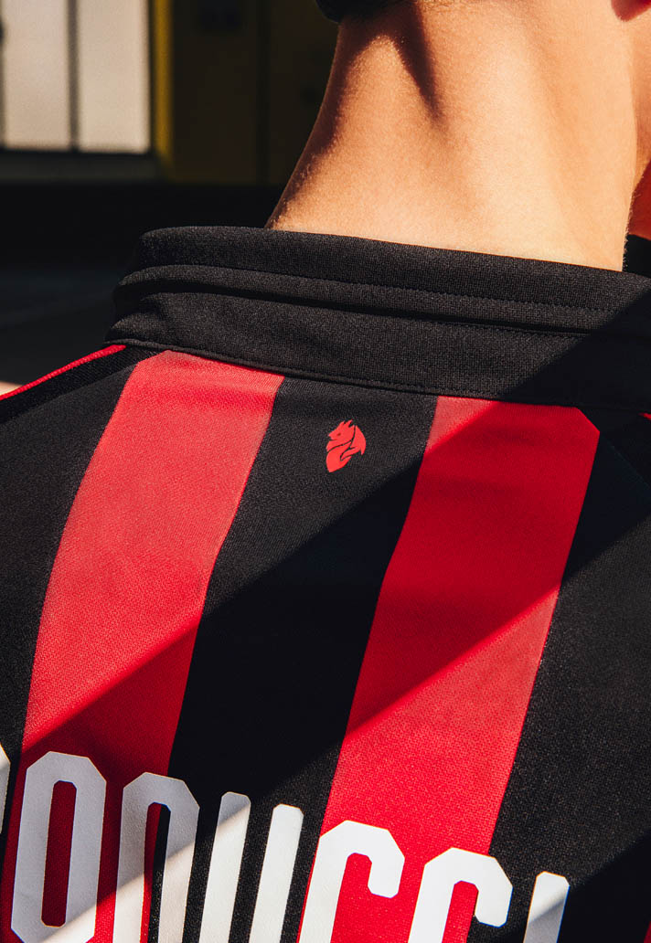 Simple but strong red and black stripes, clean white sponsor and a vintage inspired button-up collar, as seen on the club’s kits from the early part of the 20th Century. The legendary ‘Diavolo Rossonero’ (The Red & Black Devil) appears on the back of the neck, a nod to the famous quote by club founder Herbert Kilpin: "We're going to be a team of devils. We'll be red like the flames that will animate our souls and black like the fear our opponents will feel."
