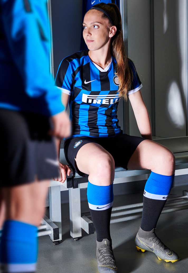 An elevated trim ensures the Inter crest stands out, and inside the jersey is an ‘inner pride’ feature pays tribute to more Inter heritage. It takes the shape of a St George’s Cross, to highlight the club’s connection to the city of Milan, as well as a star, the word ‘Internazionale’ and ‘1908’ in honour of Inter’s founding year. The kit is completed by black shorts and colour blocked socks – half black, half blue – taken directly from the neck of the Biscione, an enduring club symbol.
