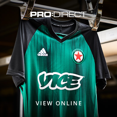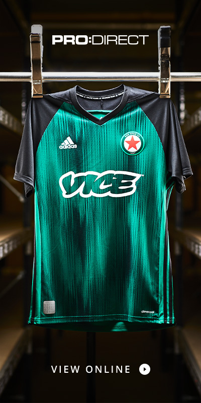 A sublimated graphic runs through the centre of the home shirt, combining the core green colouring with black for a blurred motion effect. The shirt template boasts a raglan cut, allowing the sleeves to adopt a solid black look that joins nicely with the Three Stripe branding that runs down the sides. ‘VICE’ takes up its usual position in the sponsors slot in contrasting white as does the adidas logo, while the classic Red Star FC crest sits on the left of the chest.