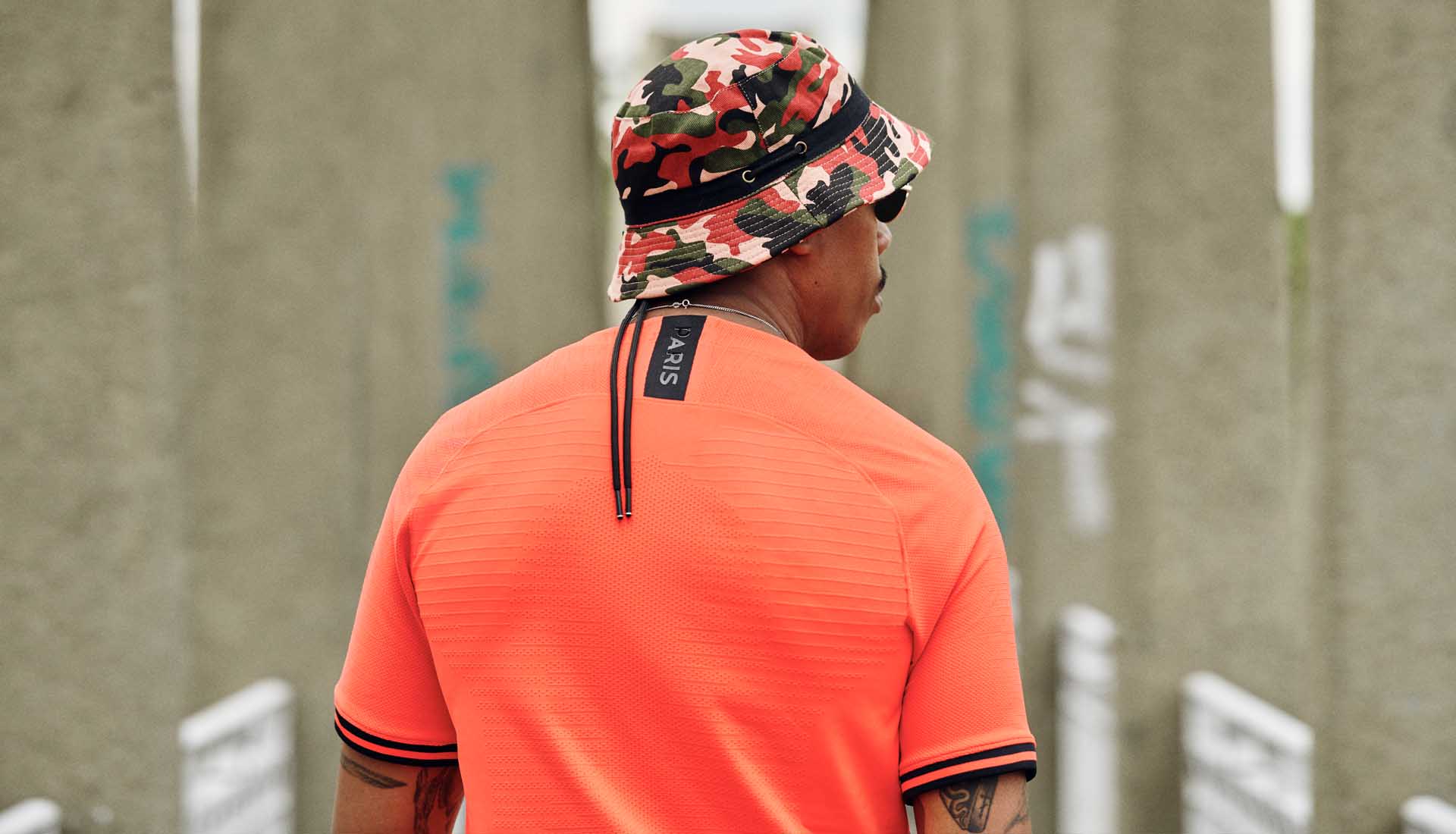The Jordan Brand influence on the new 19/20 away design runs deep: The kit is flooded in the iconic infrared shade first introduced on the Air Jordan VI back in 1991. This results in a blistering away look, with head-to-toe infrared giving all of PSG’s teams an audacious change of colors. The jersey is framed by a black trim on the collar and sleeves. The same black also details the shorts and appears on the socks in the shape of a double horizontal hoop just below the knee. On the reverse of the collar there is an ode to Paris, a city now synonymous with Jordan and set to be illuminated by an infrared glow in 2019/20.