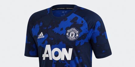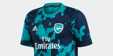 For the 2019/20 season adidas have whipped up a stunning tie dye style for their leading clubs. The only slight complaint is that it's the same template in a different colour for each club. The Arsenal pre-match shirt takes on a green and navy combo (available here), while the Man United design uses a blue and black base, which is also available for fans to buy.