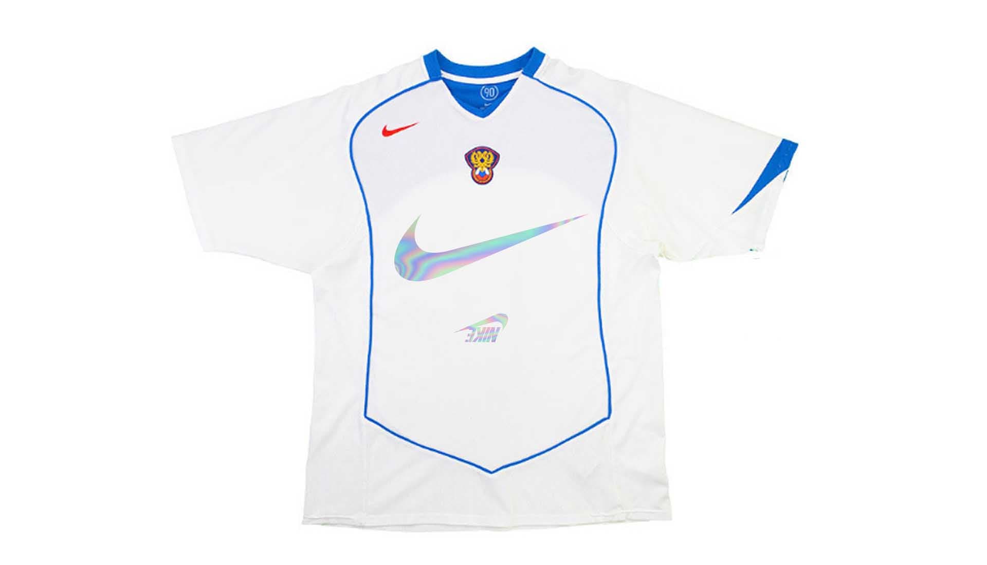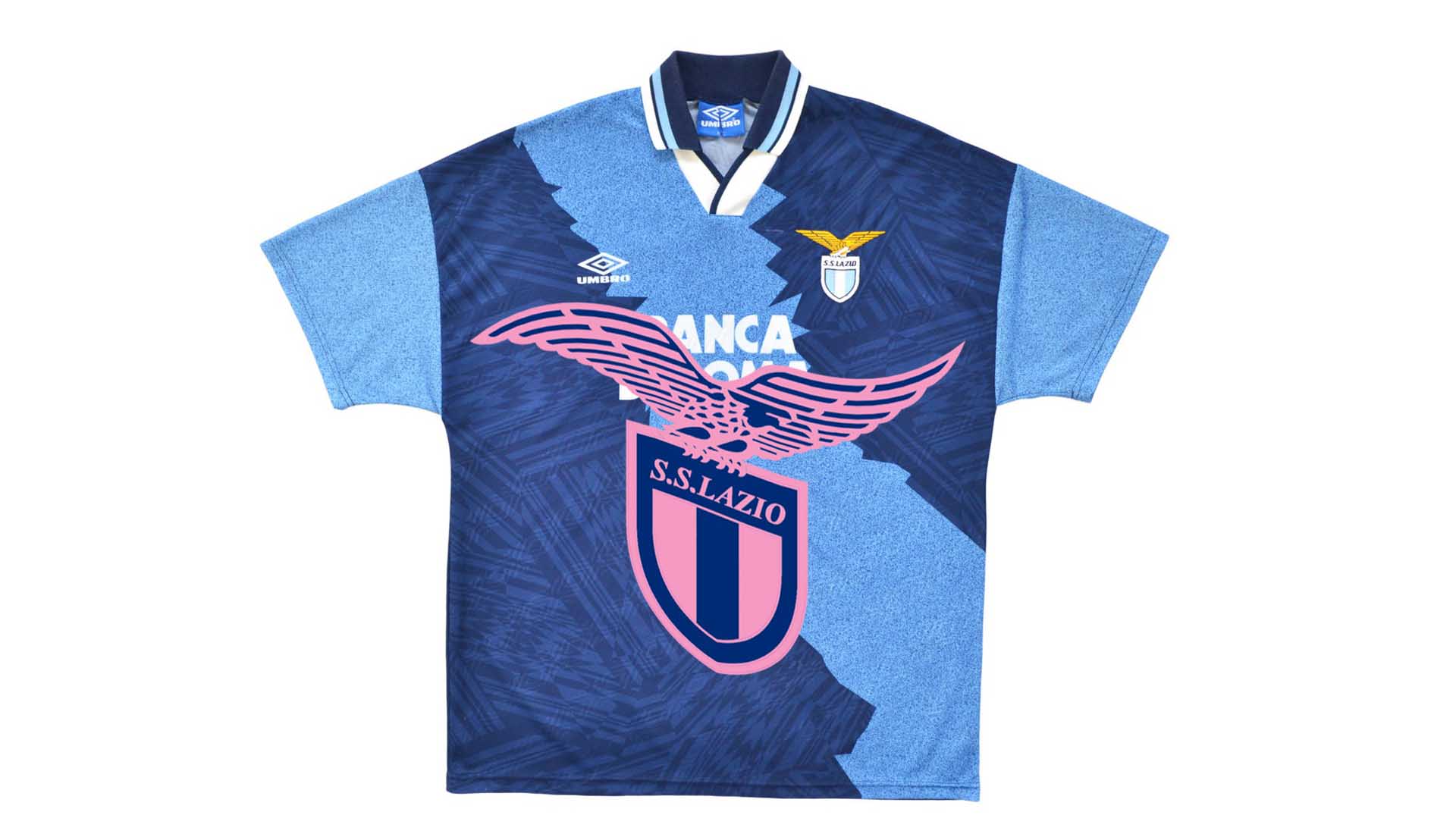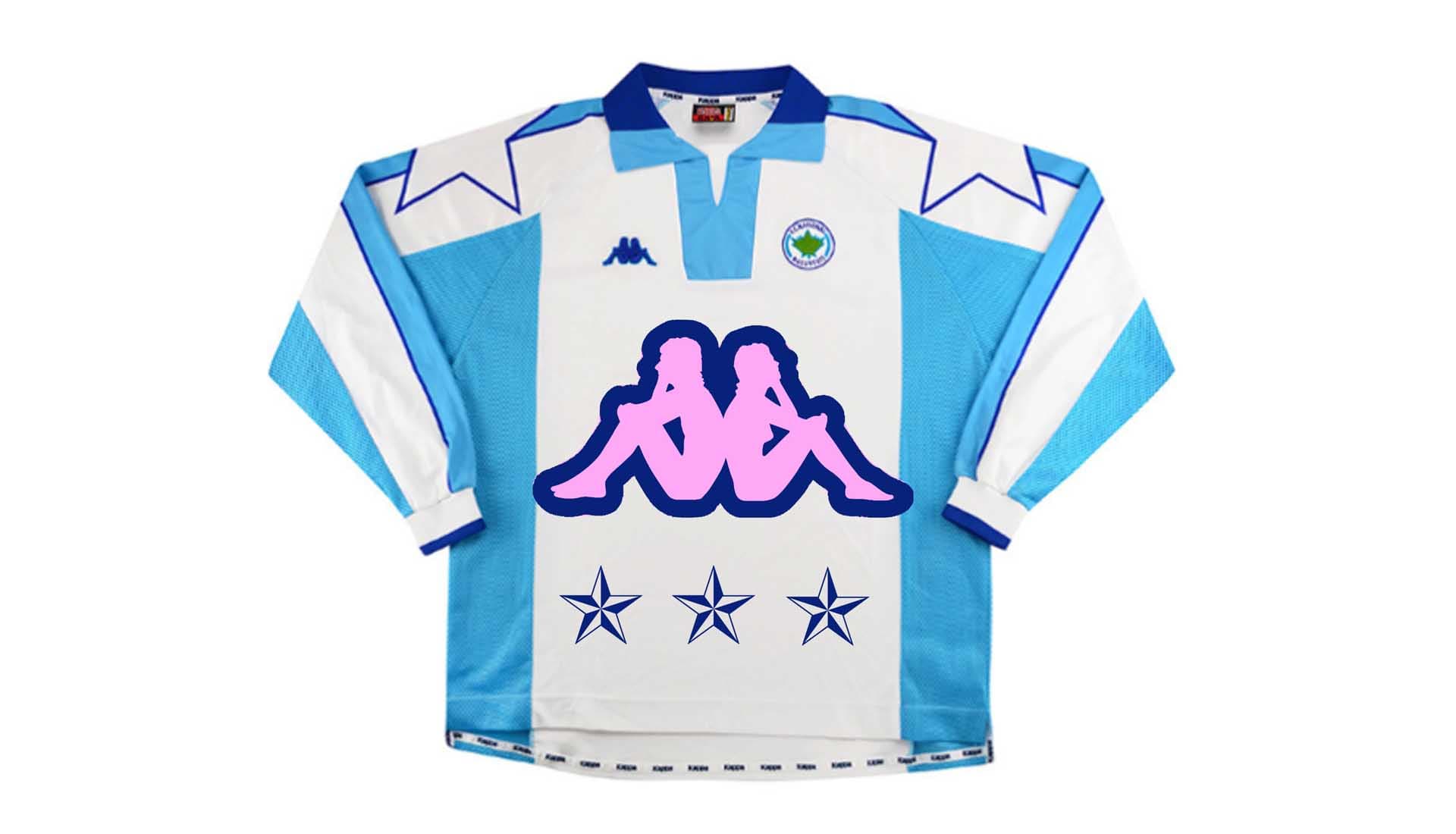 Amongst the collection is the Arsenal 02/04 home shirt, emblazoned with an enlarged Swoosh across the iconic O2 sponsor logo. It’s joined by the classic 94/95 Barca away shirt, which inspired the Nike 19/20 third shirt this season, and here it’s enhanced by an oversized Kappa logo. The Lazio shirt changes things up a bit, opting for an enlarged club crest rather than the Umbro logo. Bold and brash, just as it should be.
