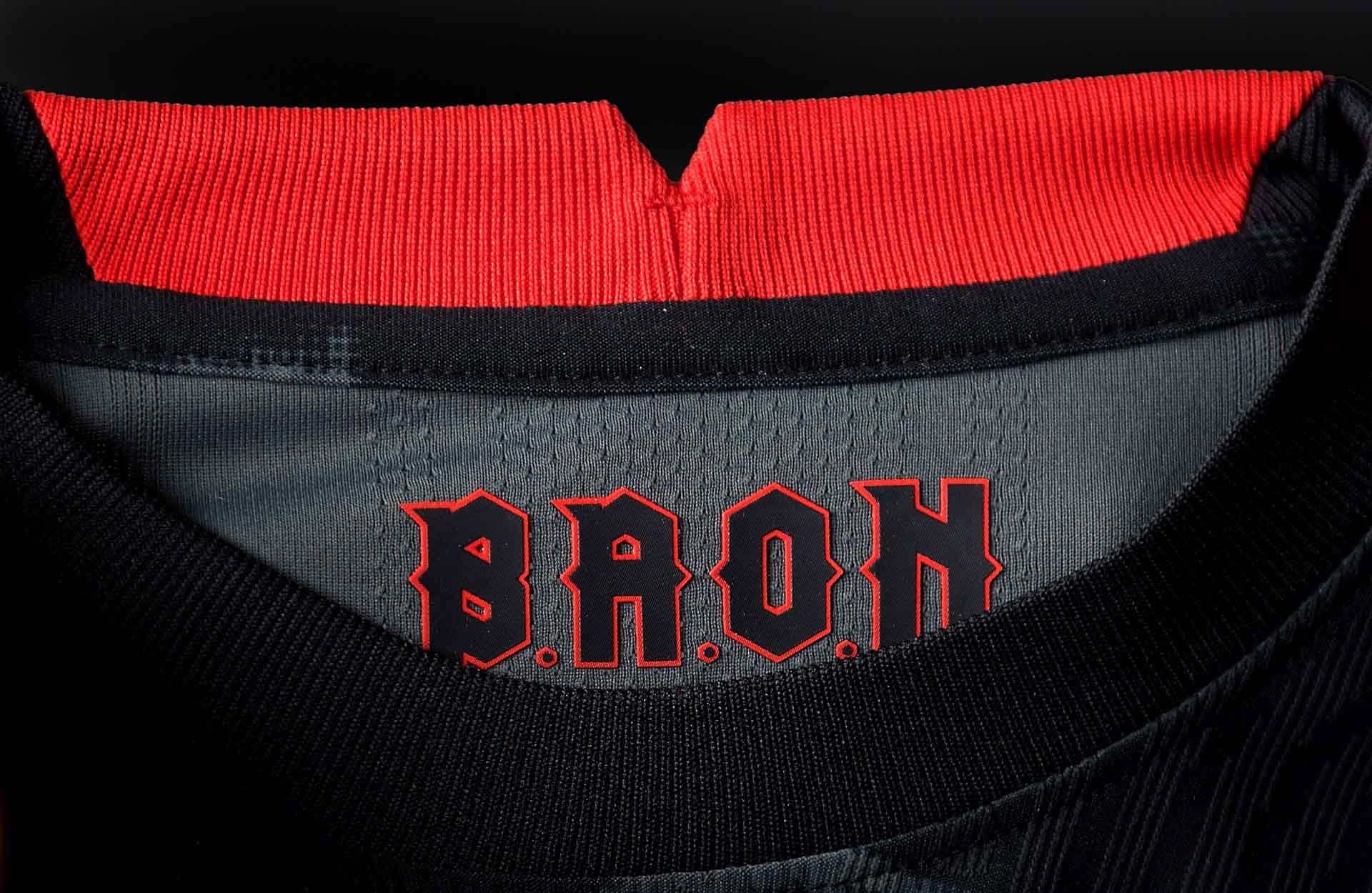 The secondary jersey, which is nicknamed the Untamed Thorn, carries thorn graphics that pull the spirit of the home fans through as metaphorical body armour. Each kit also includes the marker "B.A.O.N." printed on the inner neck, referencing the supporters' favoured literary phrase, "By Any Other Name.”
