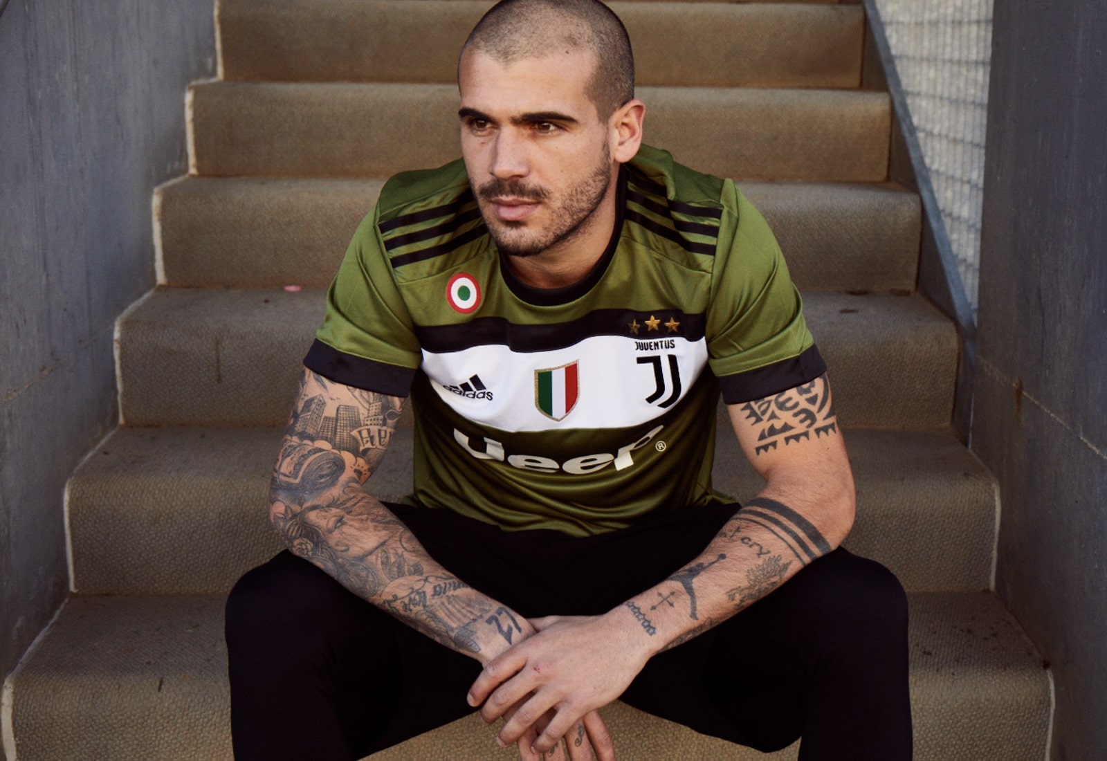 That simple round necked button collar for the home was paired with a punching yellow and blue carnival of colour in the shape of the 17/18 away. The re-invented Juve branding popping throughout, these kits provided the ideal canvas as the club moved into a new era, targeting a new generation. The third shirt then introduced a totally new colour combination for the club, combining a military green base with Juventus' famous black and white – a look based on a Creator Studio fan design.