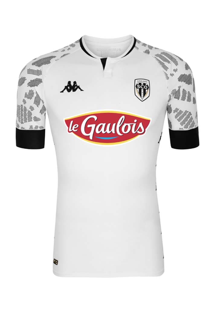 For the away shirt, there’s more of a departure from safety, with Kappa presenting a unique option for when the Ligue 1 side are away from the Raymond Kopa Stadium. The shirt sees a white base with black accents joined by a striking graphic that works through the sleeves. The sponsor is switched out to the alternate “Le Gaulois” option, while the design is finished off with the “La Force Du SCO” callout on the back of the neck, which alludes to the teams’ strength when players and fans unite.