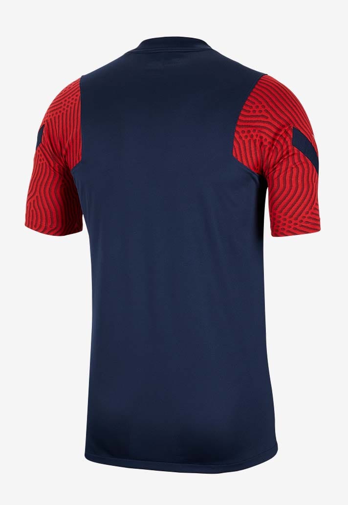 Joining the strike training tee and drill top – both of which see a navy body joined by a strong red graphic implemented on the sleeves – there’s a smart anthem jacket that adopts a traditional PSG look. A vest, shorts, trackies and a strong pre match shirt complete the performance apparel.