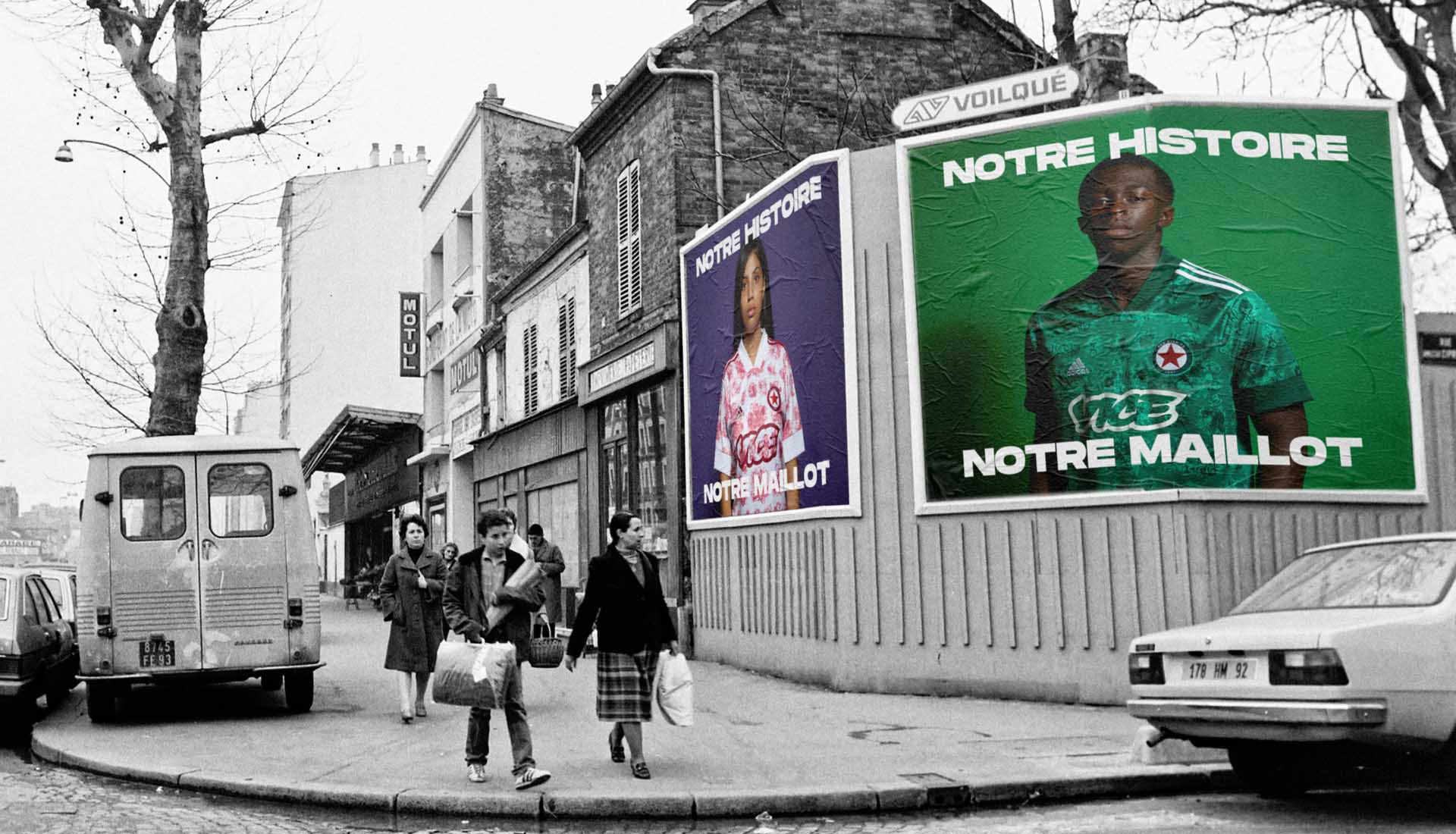 For both the home and away shirts, Red Star FC revisit the legendary toile de jouy to retrace the club's history, with ten sketches made up of famous players, supporters, Bauer, the Olympic, and future generations. The Red Star of yesterday, today and tomorrow, captured in the two distinctive presentations.