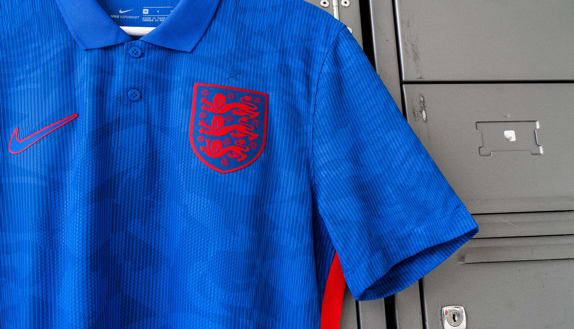 England’s away, meanwhile, is presented in head-to-toe blue, with both the shirt and shorts emphasising togetherness through a soulful all-over graphic. The shirt features another nod to ‘90s jersey culture with a fold-down collar, fastened by a button inscribed with the words: ‘We are Lions/We are England’. The jersey is enlivened by bright red side stripes, a Swoosh and crest. The names and numbers on both home and away will be printed in an exclusive font inspired by the Three Lions’ identity.
