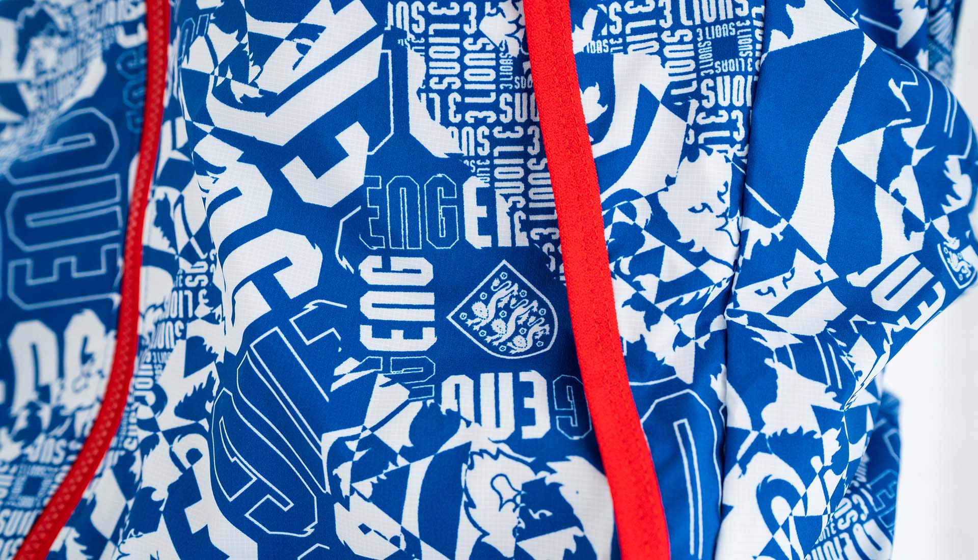 England’s wider collection continues the theme of togetherness and the use of exclusive graphics. The team’s pre-match jersey comes in a vivid red, which is adorned by another all-over ‘90s inspired illustration. The ‘community of lions’ print returns on a crew neck collar, while a full colour crest appears on the chest.