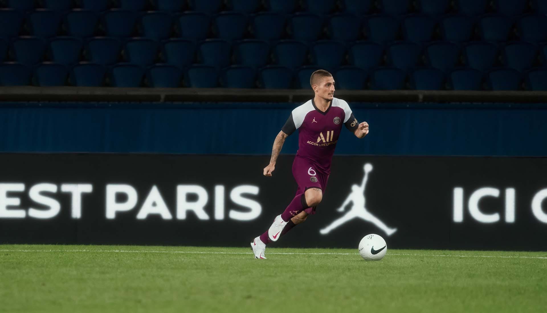 The recent reveal of the PSG x Air Jordan 4, Air Zoom Renegade and Zoom 92 all hinted at the colour scheme of the eagerly anticipated 2020/21 lineup, and sure enough it’s now been confirmed with the reveal of the PSG x Jordan 20/21 third shirt, which is also accompanied by a glimpse of the wider collection that’s sure to follow. The new design of the kit and collection refer to the color of the Air Jordan VII, debuted by Michael Jordan on the floors of the 1992 NBA All-Star Game. The VII was the brand’s first pair to feature the bordeaux color.