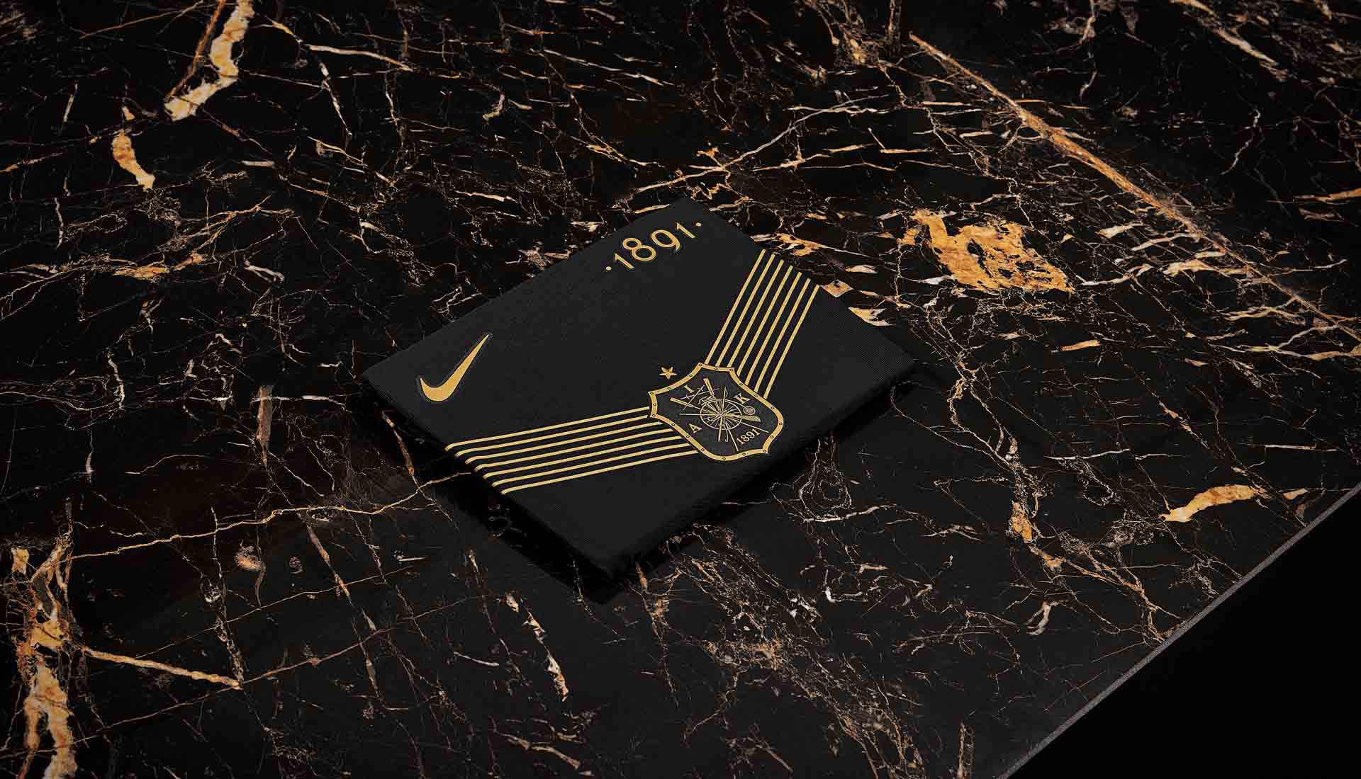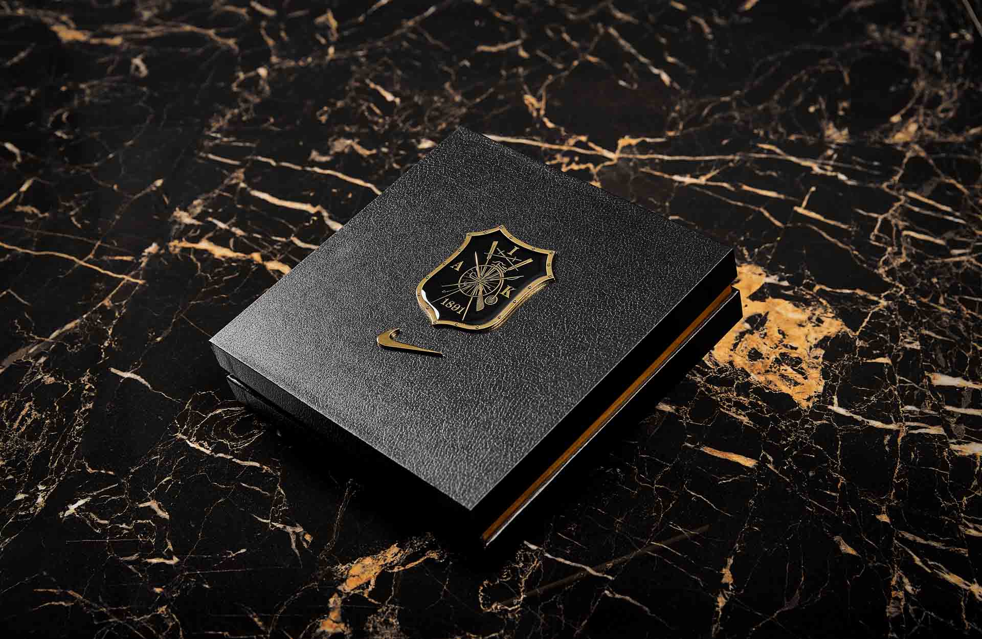Details such as oars, fencing swords, rifles, bikes, skis, and fishing rods are balanced against Nike’s swoosh and the text “1891”, which is also in gold and rests above the emblem. The broader sporting references, like fishing and rowing, encapsulate what AIK was founded for – being the sports club for everyone.