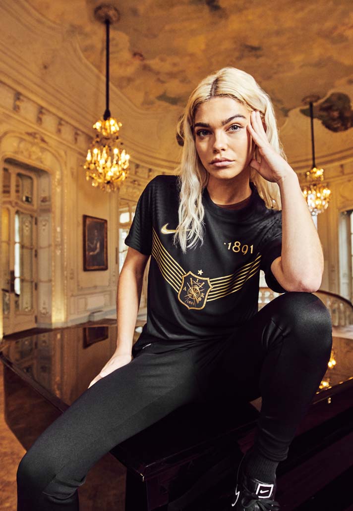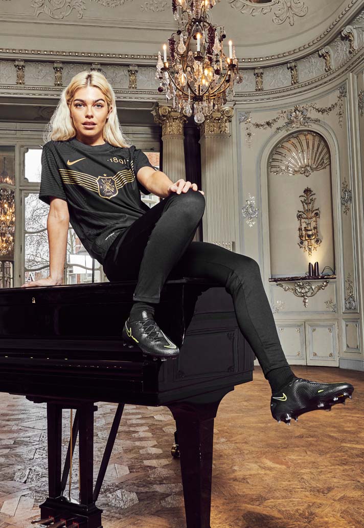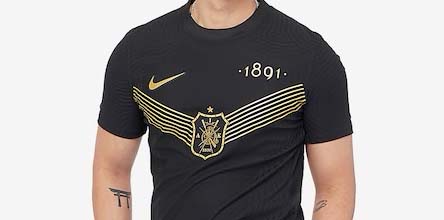 The CXXX Edition combines the best of both of those releases, taking the gold details of the White Edition and placing them on a black base. The design sees seven golden stripes over the chest, leading to the big golden emblem in the middle of the jersey – a tribute to the 130 year anniversary of the original club brand from 1891. Details such as oars, fencing swords, rifles, bikes, skis and fishing rods are balanced against Nike’s swoosh and the text “1891”, which is also in gold and rests above the emblem.