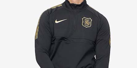 The shirt is then complemented by a similarly styled and coloured apparel collection, which is comprised of training jackets and tees, with that same golden trim on a black base.