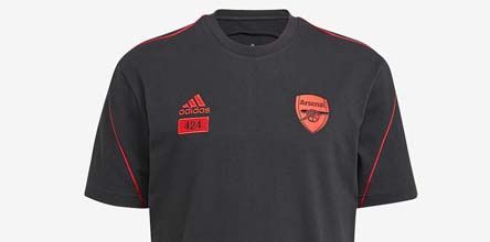 The apparel includes bold red AFC, 424 and adidas brandings with a red keyline which highlight the architecture of the Emirates Stadium. A training jersey with the 20/21 home jersey graphic in tonal black and carbon grey, and a poncho with oversized 424 branding are two of the star pieces. The collection also includes a super comfortable adilette and the brand new Ultraboost 21 in a black and bold red colourway.