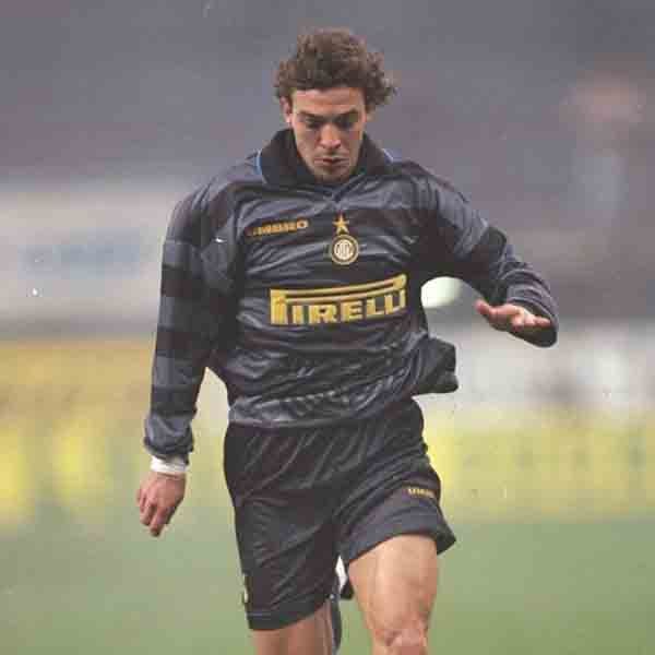 A shift in tone for the recognisable blue stripes of Milan, probably brought on due to their worst league finish in almost two decades in the preceding season. Can't take anything away from that fresh take on the classic look though. Looks all the better with Javier Zanetti doing his best Saturday Night Fever impression too.