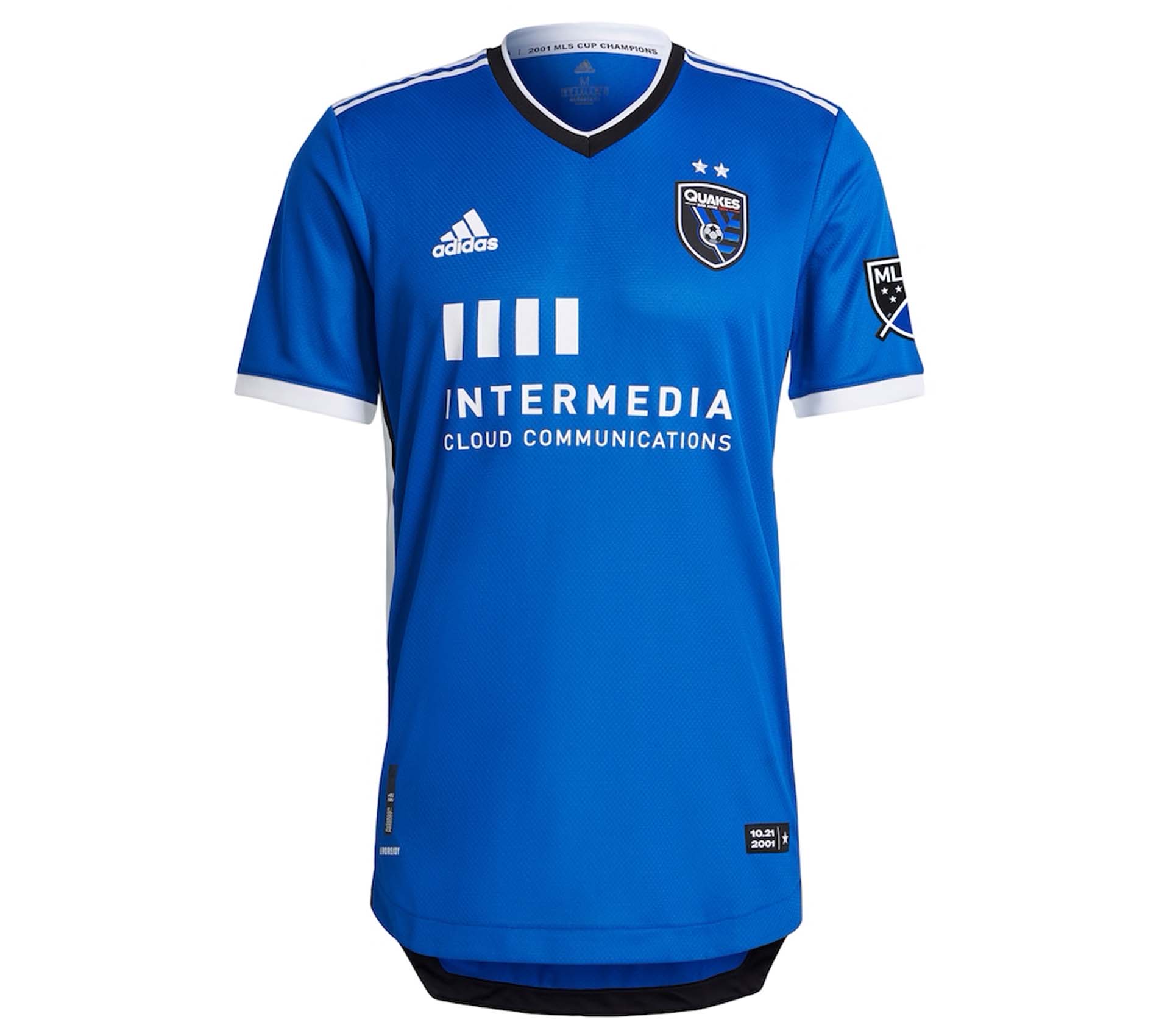 The 'First Star' jersey is the Quakes’ first with a primarily blue colour scheme since 2016, breaking a four-year run of black jerseys. It's a modern take on the team’s look from 2000/02, in which the team returned to its original name Earthquakes from the Clash and won its first MLS Cup championship in 2001. The team’s victory in MLS Cup 2001 is forever remembered and celebrated with the first of two stars above the team’s crest.