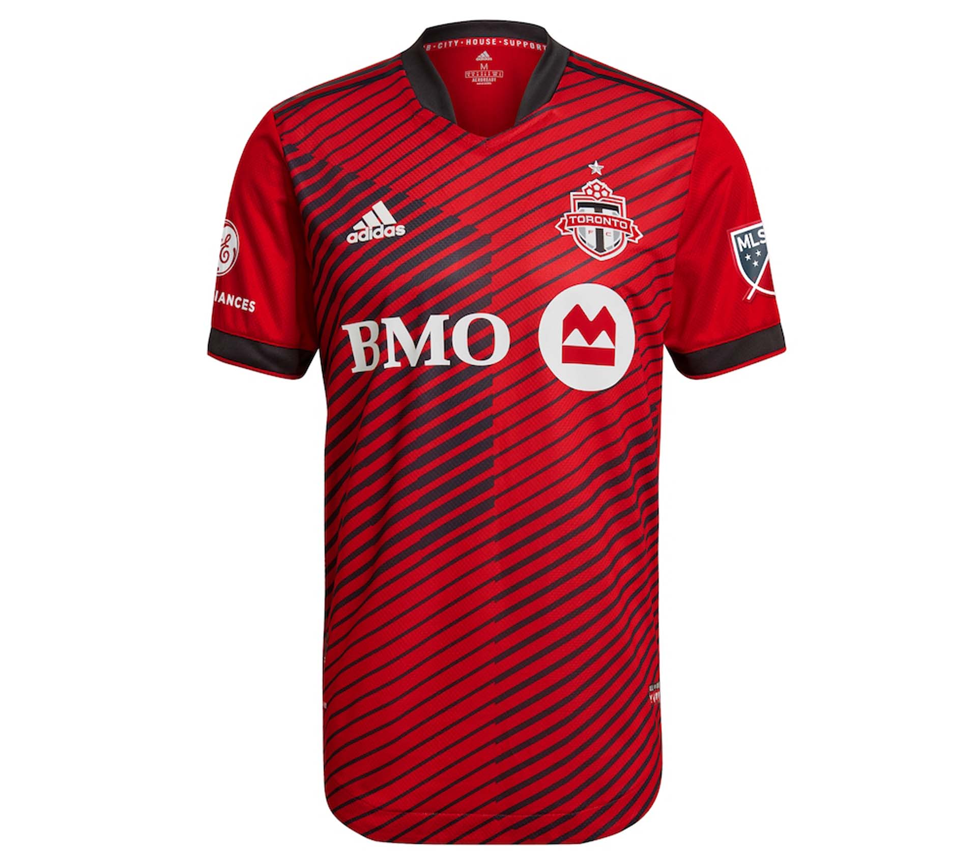CF Montréal unveiled what is their first jersey since announcing an identity change this past January. Gone is the 'Impact' of their name, instead replaced by the simple impact of this striking design. The new CF Montréal logo is embossed over the entire jersey, and there's a DNA band alongside the neck tape, serving as a reminder of the club's history and roots.