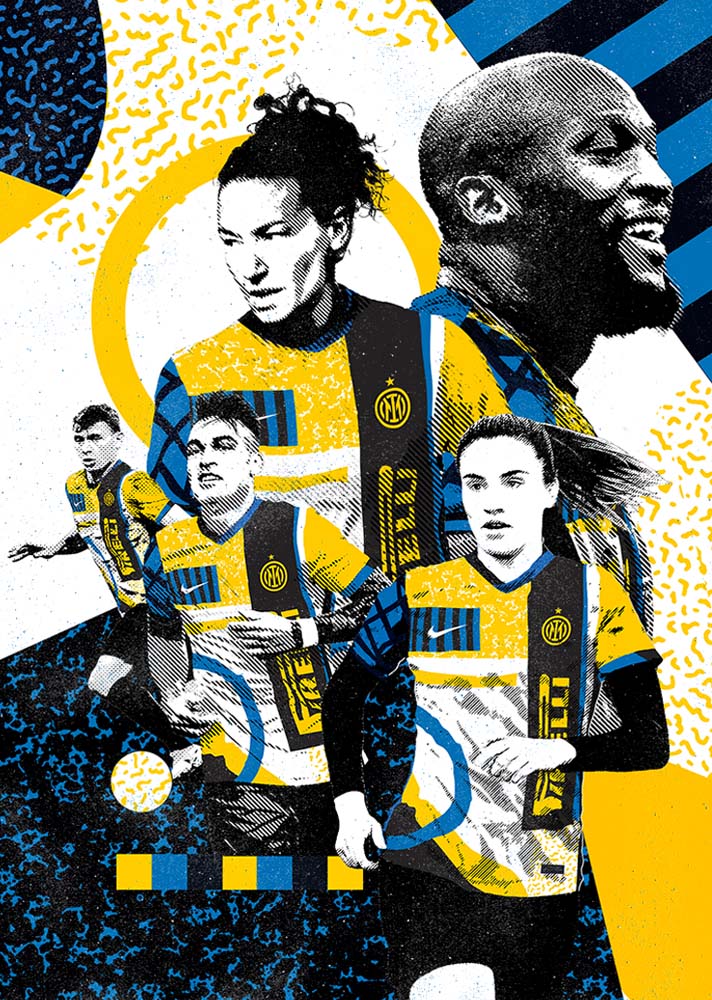 Inter revealed their new club crest and visual identity recently, and now it’s followed up by the I M Collection – the first to feature that new crest. And chief among the collection is the club’s new jersey, which features an arrangement of shapes down the body, from the bleach-like prints on the chest to the more understated use of stripes, circles and grids, divided through bold proportions for an unmistakable presence. The aesthetics of the new shirt are inspired by the visionary attitude of one of the club's founders, the futurist artist Giorgio Muggiani.