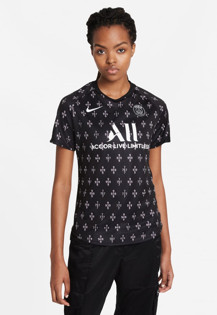 The prematch shirt, already displayed in PSG’s prematch campaign, also lands among the collection, with its striking numerical design on a black base.