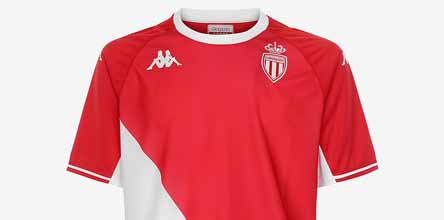 Built around the legendary Diagonale, the home shirt features for the first time a new shade of red called “tango red”. The historic Diagonale, imagined by Princess Grace of Monaco 61 years ago, is now oriented at 55 ° and appears on the front of the jersey only. The main sponsor, eToro, will takes its place for the first time on the front, adopting the colouring of the shirt for a seamless placement.