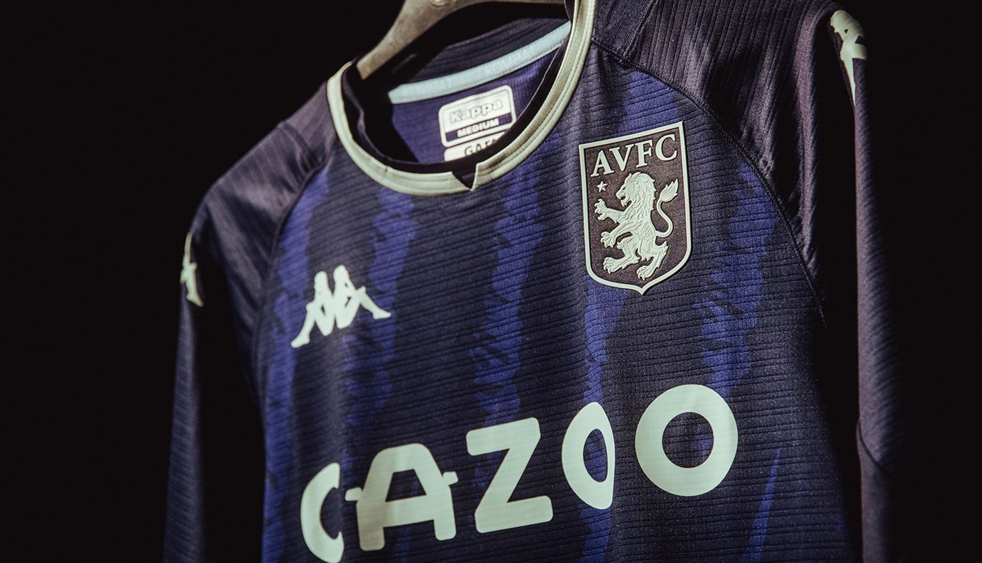 The new Villa third shirt has been designed around the legendary Villa lion, an iconic feature in the crest throughout the club’s history, dating back to their foundation in 1874.The claw marks feature on the front and back of the shirt, and the lion is printed on the back collar. The kit is then completed with pops of “Celadon Green” that feature on the club crest, the Kappa omini logos, the sponsor Cazoo, and on the inserts on the back panel, cuffs and collar.
