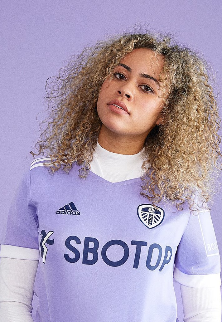 Arriving with a fresh colour scheme for the club, adidas launch the Leeds United 21/22 third shirt, which boasts a lilac base with white and navy trim.