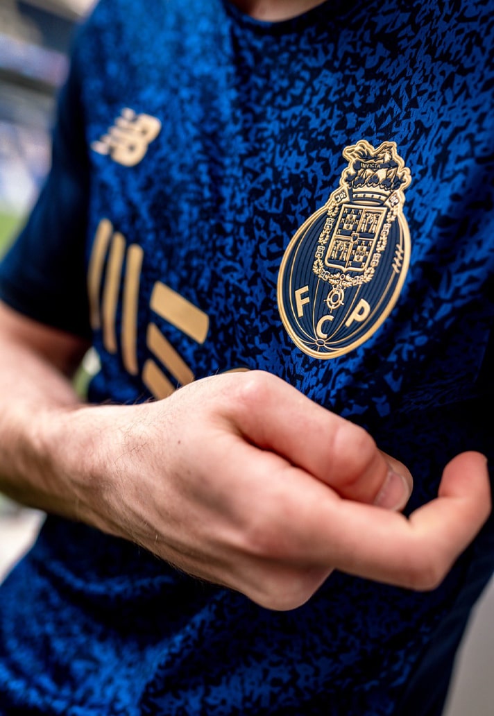 A navy and nautical blue design that treads in the traditional footsteps of previous FC Porto away shirts, but New Balance switched it up with the inclusion of metallic Gold details that pop through the sponsor, branding and club crest, lending a regal finish to the look.