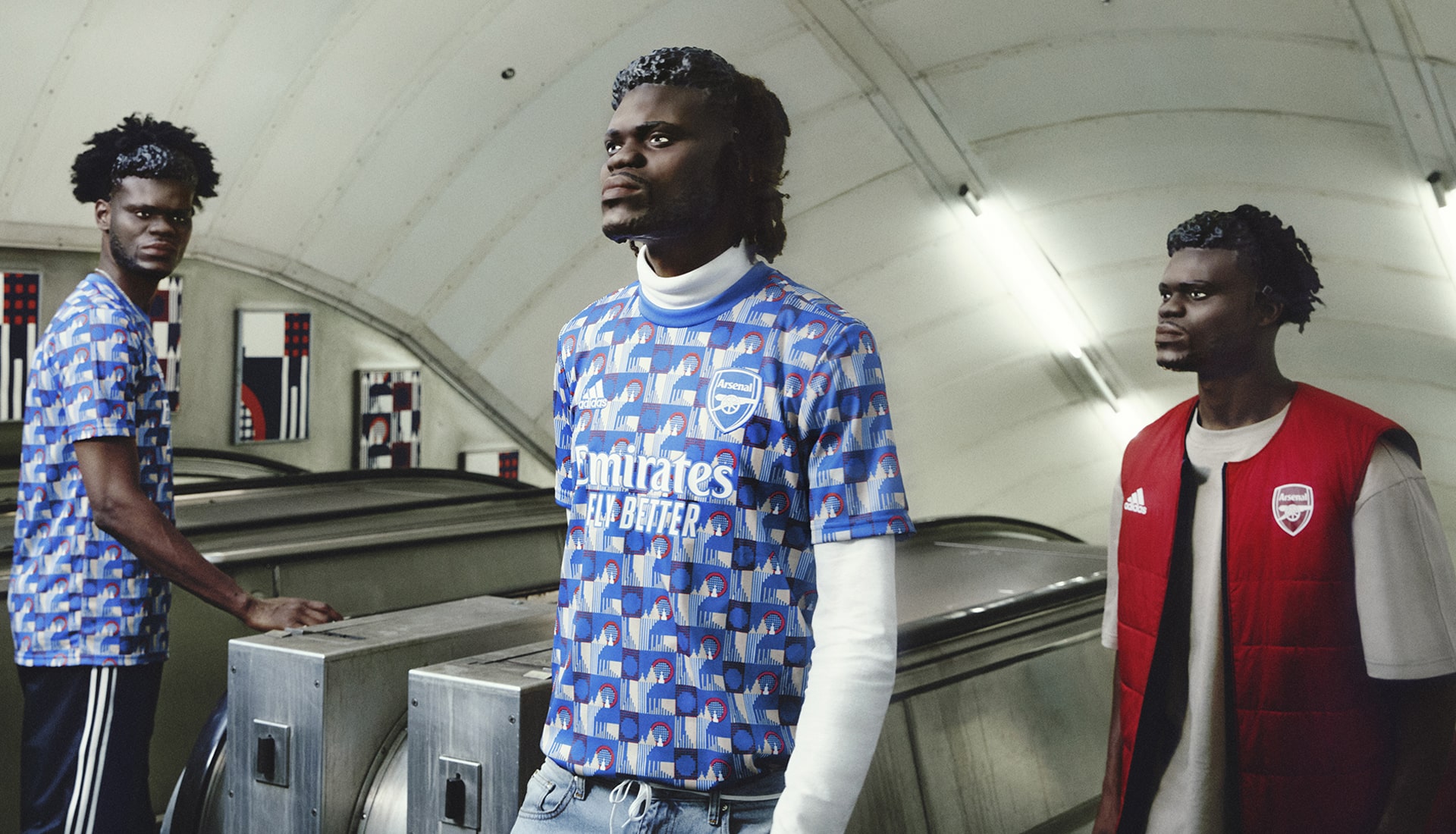 Celebrating the historic connection between the football club and the London Underground, adidas and Arsenal have launched a prematch collection in collaboration with Transport for London (TfL), using the all over print of the seat moquette design used on London’s Piccadilly line.
