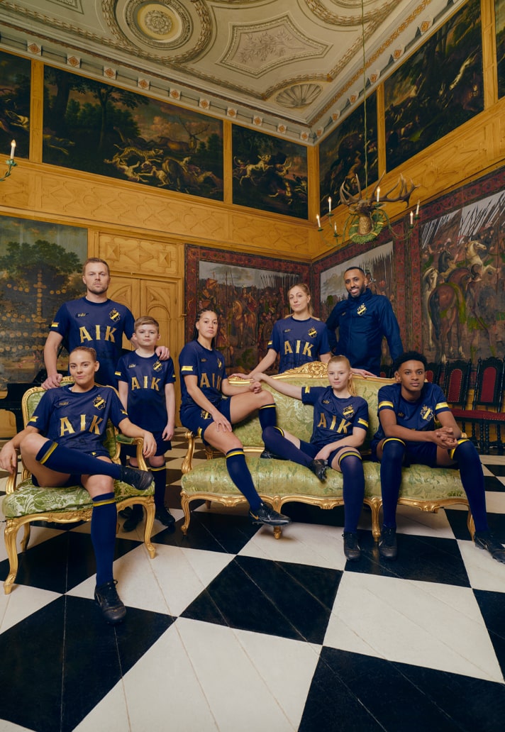 The jersey certainly has a royal feel to it, but AIK are keen to stress that it comes with a twist; where royalty is often associated with elitism, power and money, the club say that all AIK fans are kings and queens, as acting Club Director Fredrik Söderberg explains: “To be king or queen is less about position and more about attitude. Every AIK fan is royal in their way of being. From players in the A-league to the kid’s teams, volunteers, leaders and supporters. Regardless of who you are or where you come from. Everyone has a black and yellow heart that pumps royal blue blood. That is the theme of this year’s preseason jersey.”