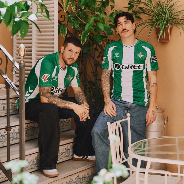 The design is inspired by natural tints, setting its focus on creating a shirt that not only blossoms in the playing field but that also flowers on a stylistic level. Hector Bellerín – who has long been a crusader for sustainability – Juanmi and William Carvalho are the visible faces in the campaign video.