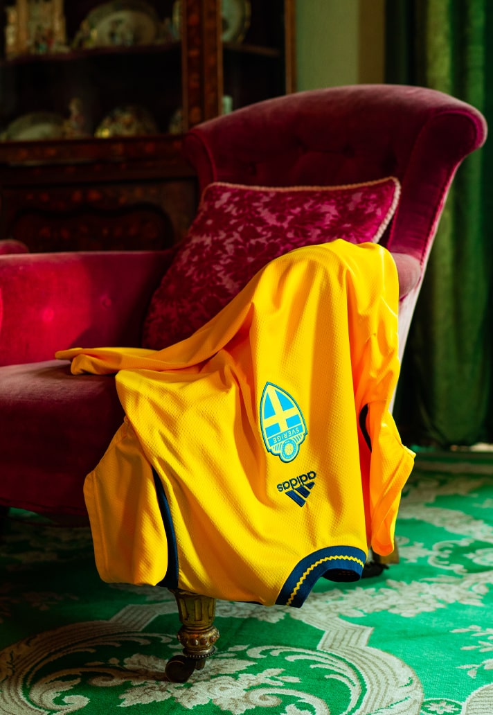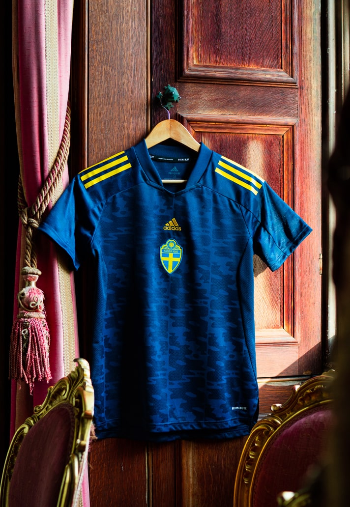 One of the tournament favourites and masters of mind games it appears, the Sweden home shirt features a detailed breakdown of how to beat them. Confident move... The design is inspired by Sweden's sea coast, with a wavy silhouette around the neck that reflects the shape of Sweden's coastline. The away shirt follows the trend set out previously, arriving in what is a fairly traditional dark navy with yellow accents.