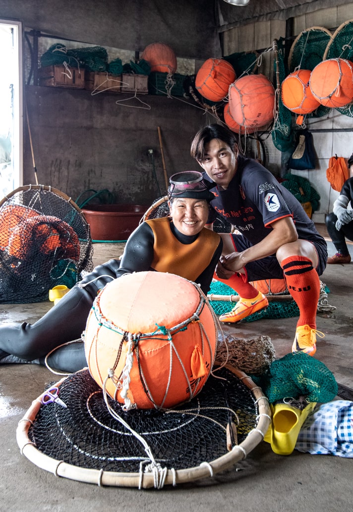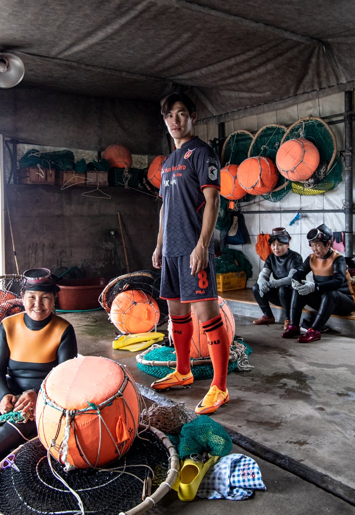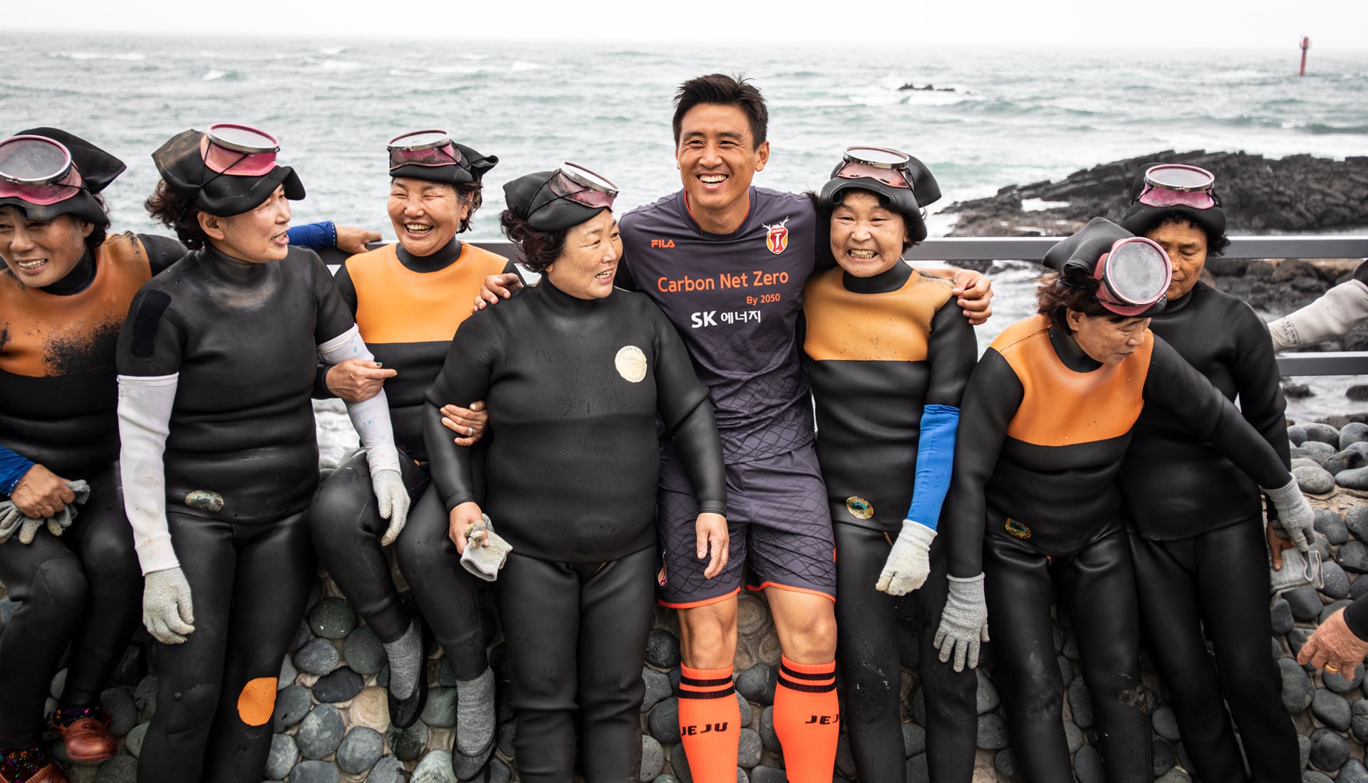The ‘Jeju Haenyeo’ shirt sees a raised collar in a nod to the wetsuits that the female divers wear. The dark grey base is a further acknowledgement of the female diver's uniform, while the orange, the symbolic colour of Jeju, pops through collar, cuffs and sponsor. There’s then a sublimated pattern of the “Tewak" net, used by haenyeo when working in the water. Jeju fans collected 32,153 bottles, far exceeding the target of 10,000.