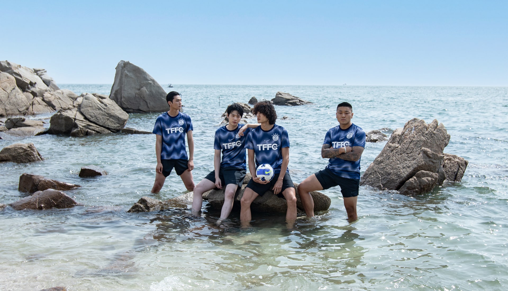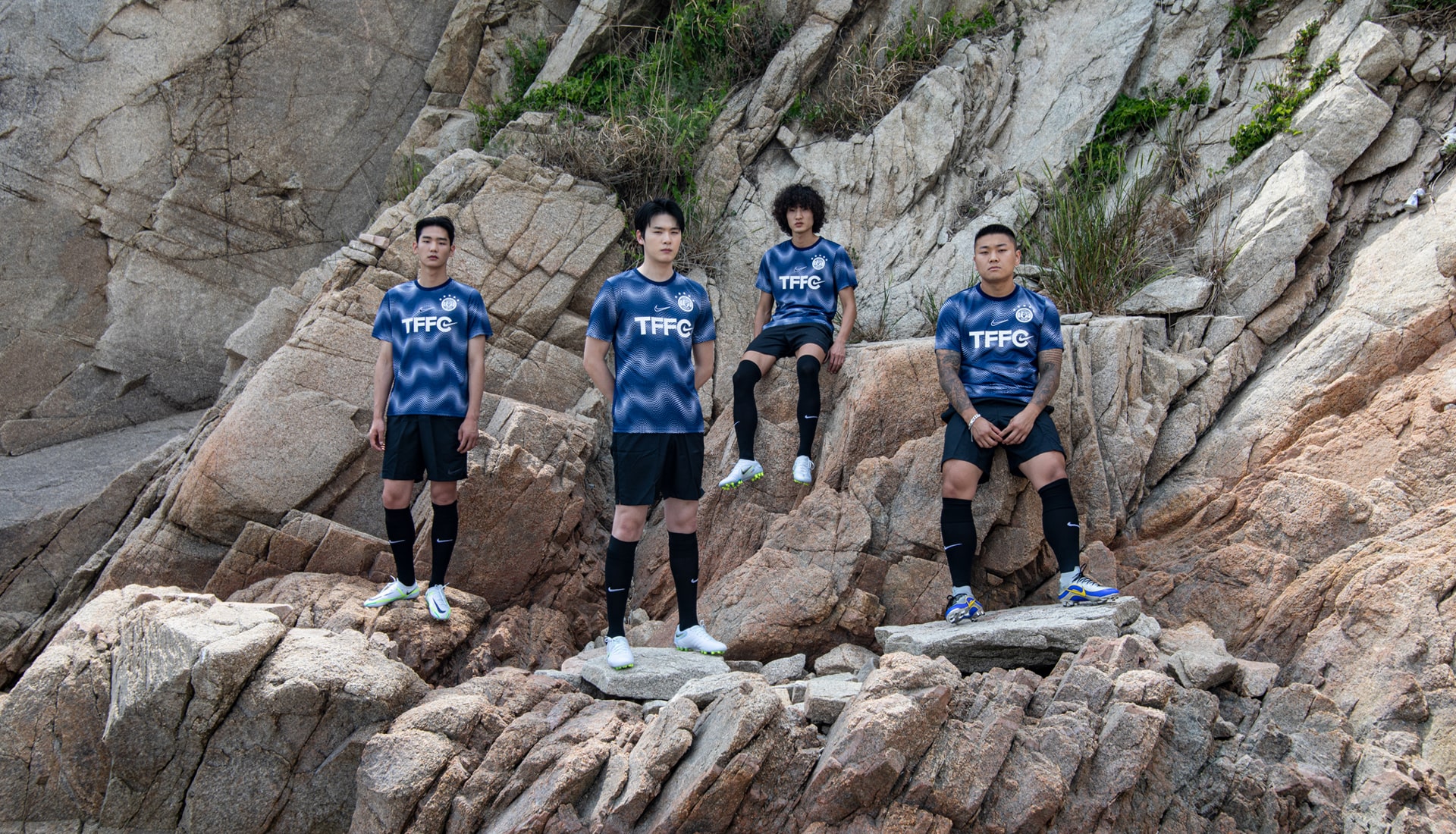 Taking the ‘Wave’ shirt to its spiritual home, TFFC headed to the beach to shoot their latest lookbook, framed by the scenery that inspired the design. Connected by their love of football and all things Nike, TFFC is comprised of a diverse collection of characters with various jobs such as with various jobs such as models, actors, entertainers, singers, DJs, photographers, stylists, art directors, designers, and tattooists. With a shared love for all things Nike, the collective are continually looking to shift the perception of football culture in South Korea into a more mainstream market.