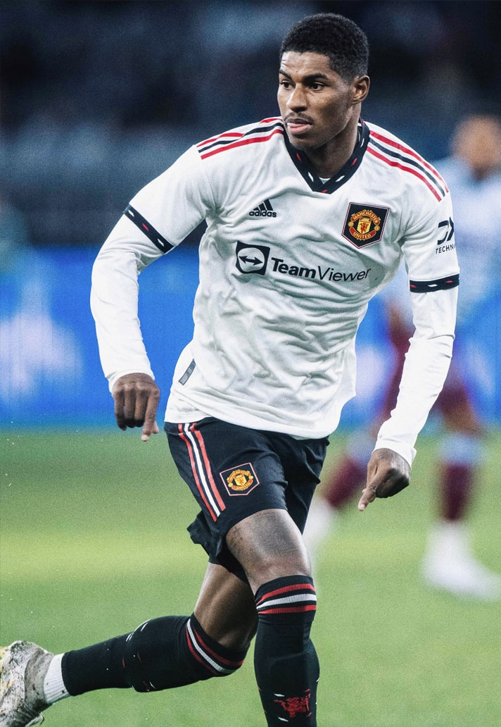 The club's first white away shirt since the 15/16 season sees the additions of two-tone black and red Three Stripe details featuring across the shoulders as well as detailing in the collar and cuffs ensuring all three core club colours come together through the kit.